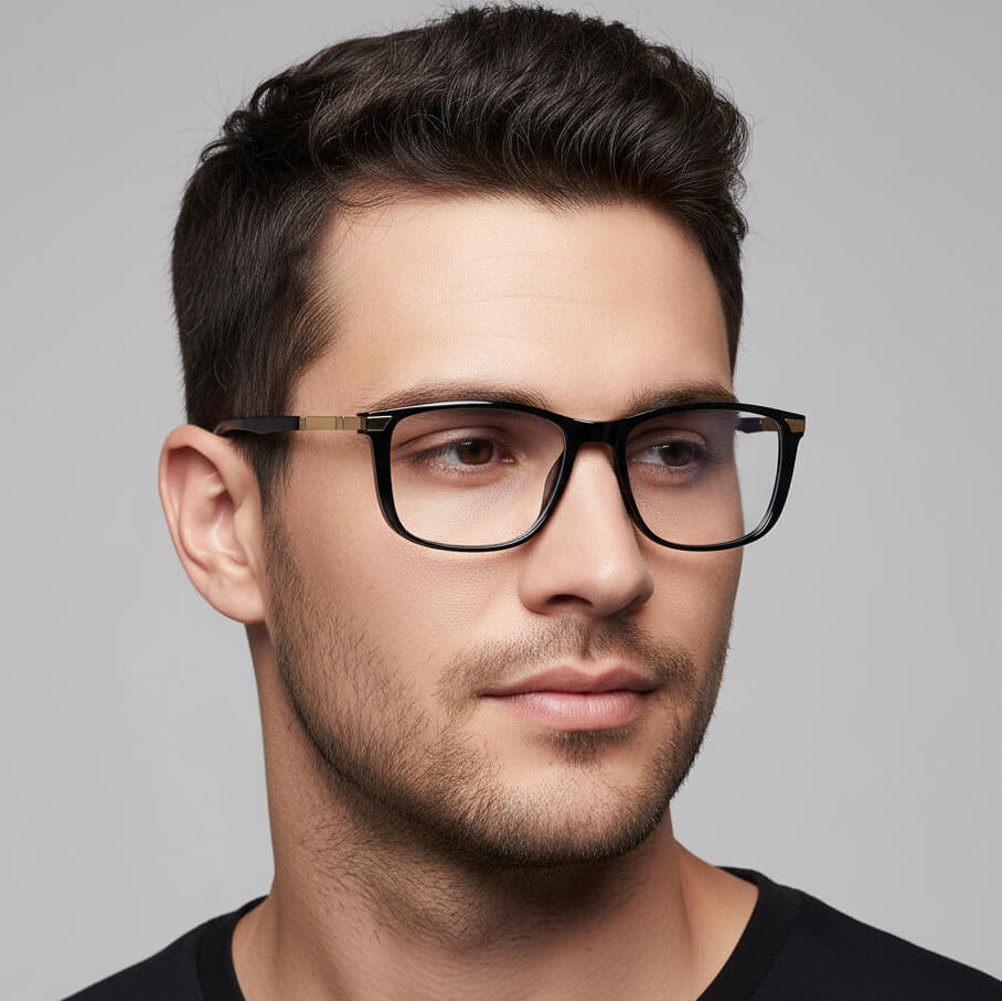 Wyjątkowe prostokątne okulary stworzone dla niepowtarzalnego wyglądu. Oprawki korekcyjne wykonane zostały z lekkiego i solidnego materiału TR90 ze stalowymi zausznikami. Okulary posiadają zawiasy na teleskopach.