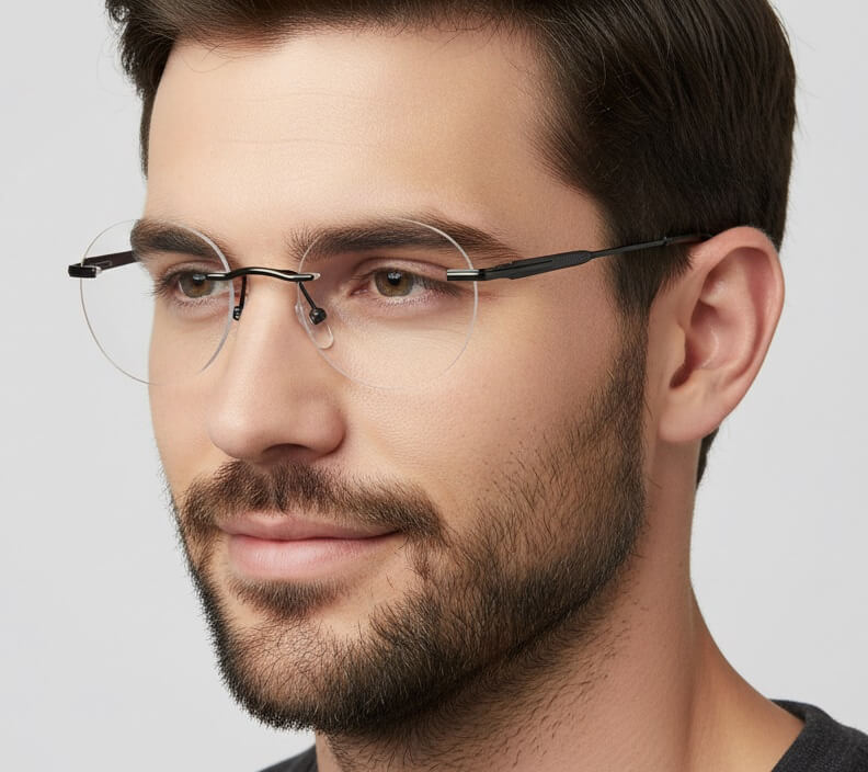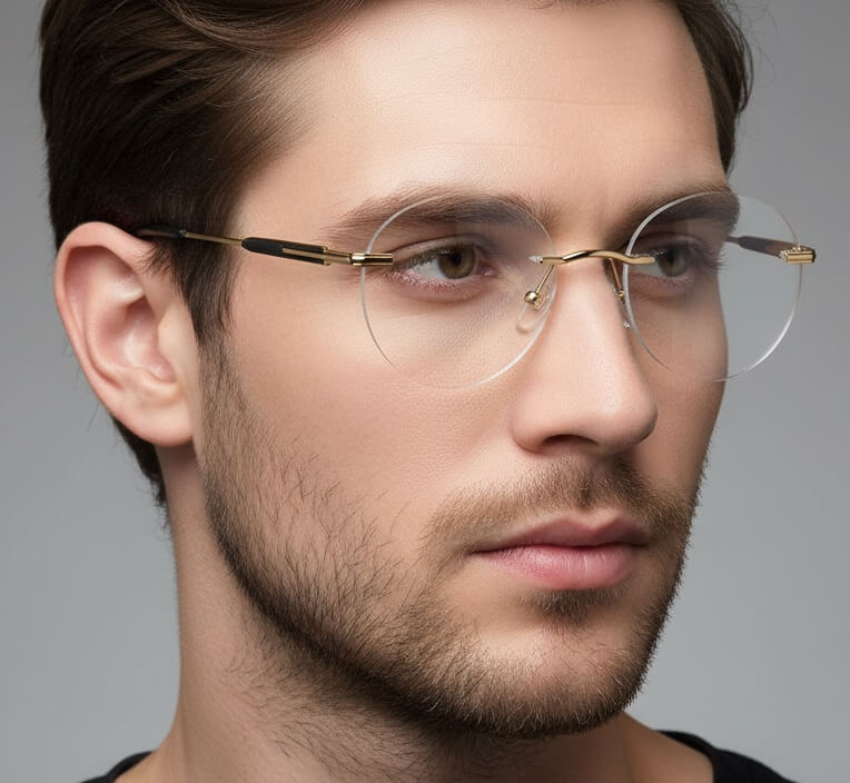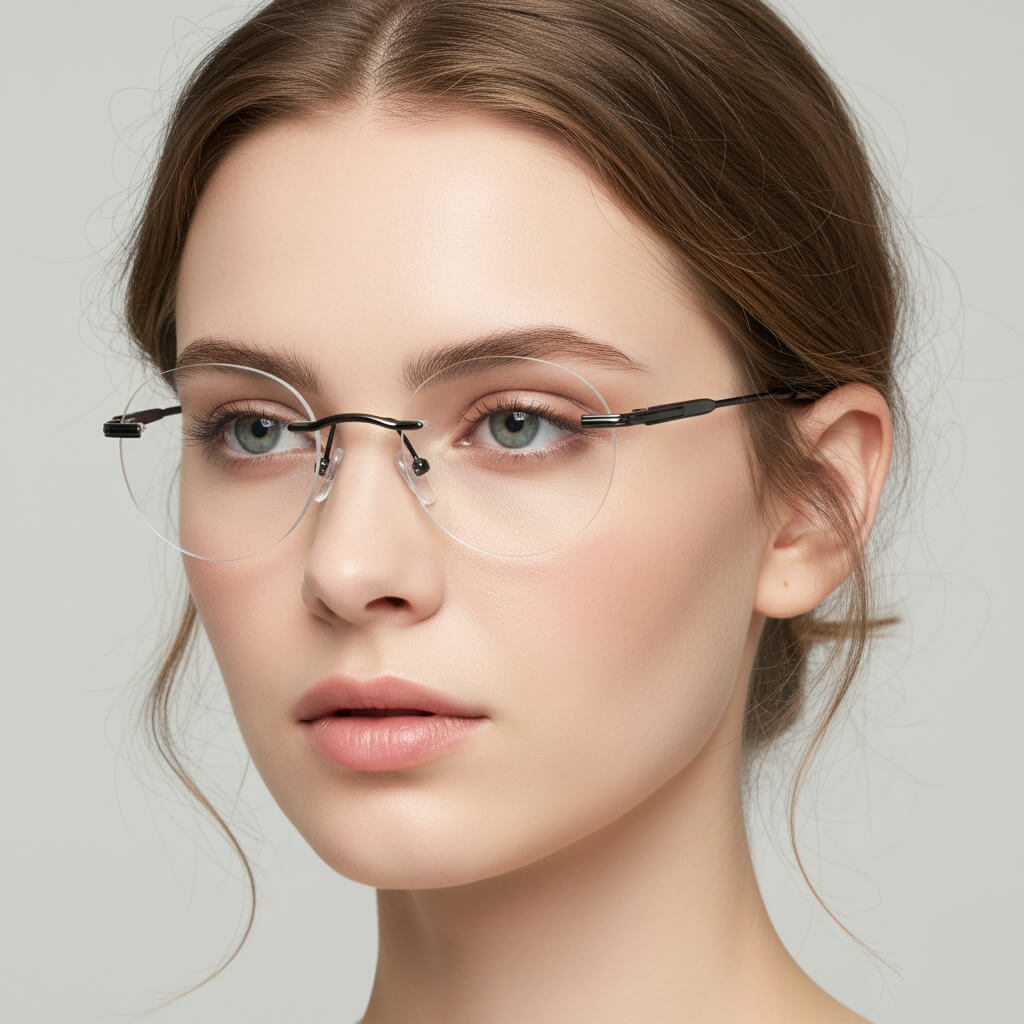 Bezramkowe oprawki typu patentki, model okularów optycznych przeznaczony pod korekcję lub jako zerówki do uzupełniania codziennej stylizacji ze stali nierdzewnej zarówno dla kobiet i mężczyzn