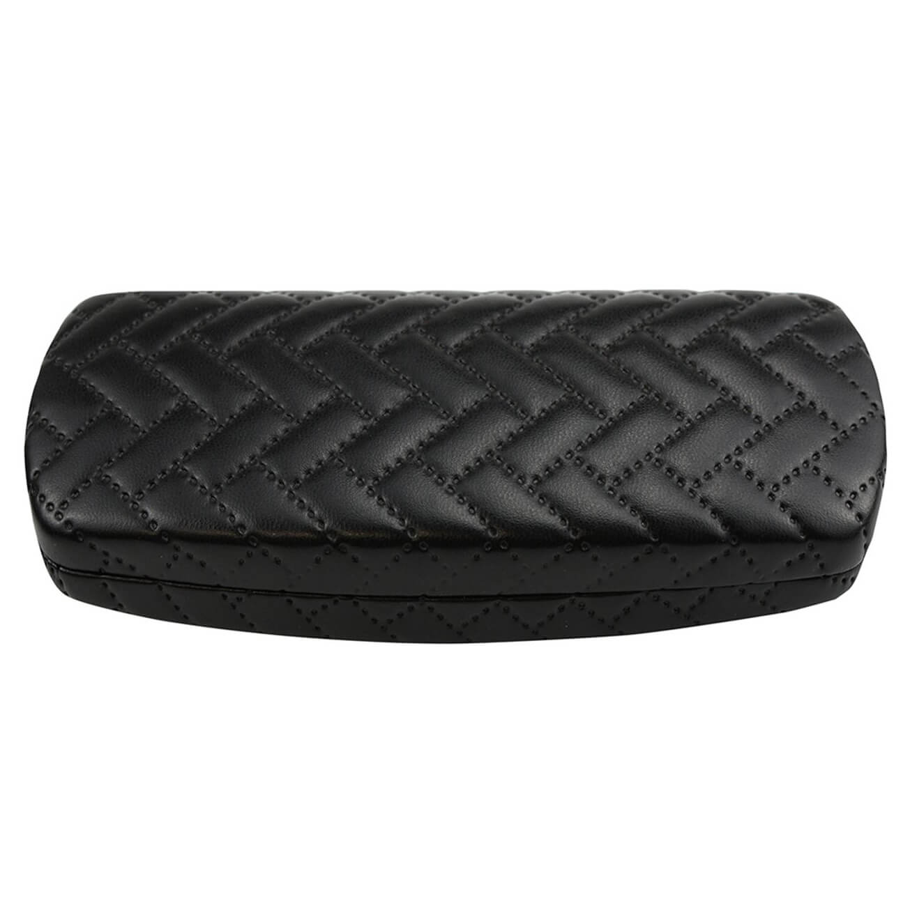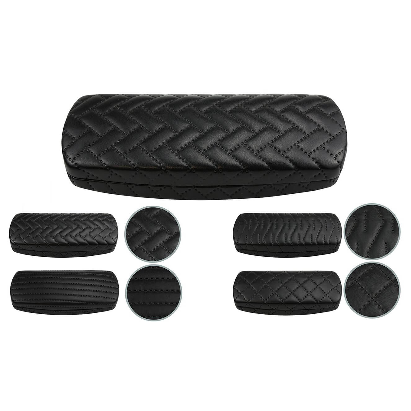 Pikowane etui na okulary w nowoczesnej strukturze, zamykane na zatrzask obite od środka czarnym zamszowym materiałem