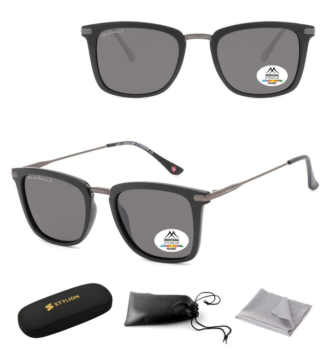 Czarne prostokątne okulary przeciwsłoneczne z polaryzacją MP12