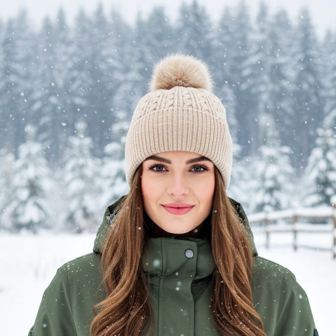 Ciepła i miła w dotyku czapka zimowa z pomponem dla kobiet