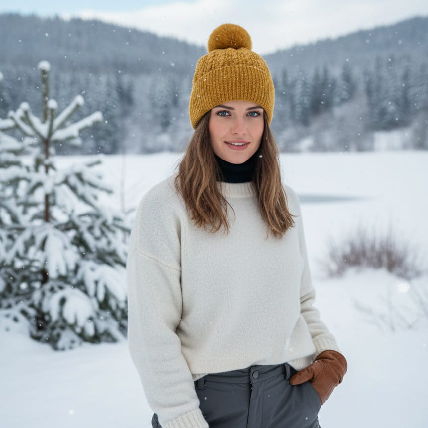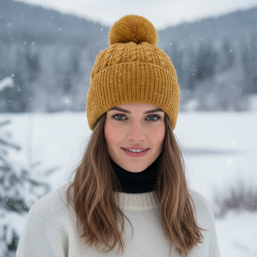 Ciepła i miła w dotyku czapka zimowa z pomponem dla kobiet