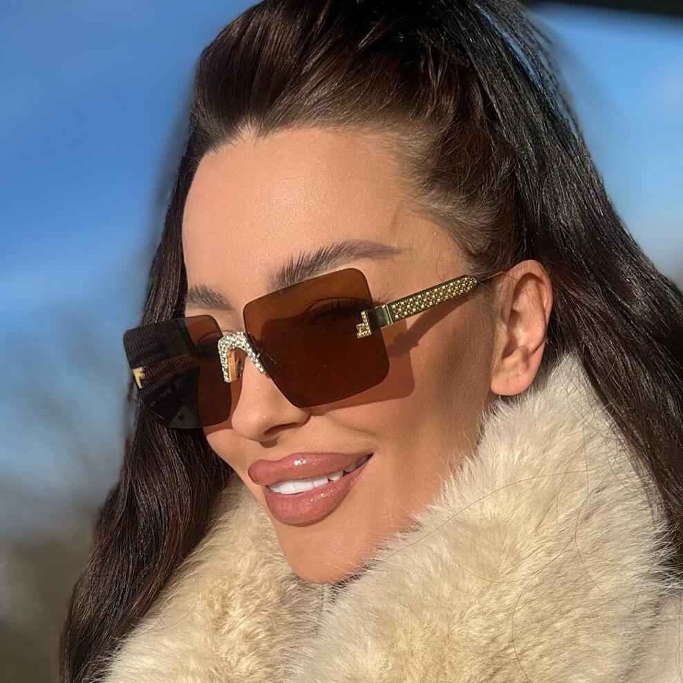 Bezramkowe Damskie przeciwsłoneczne okulary z cyrkoniami