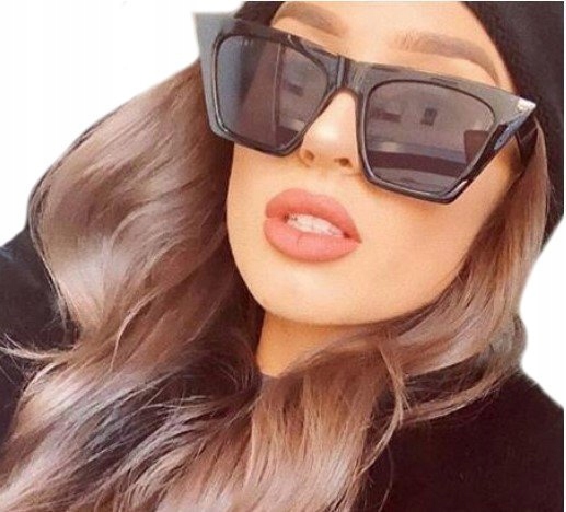 Duże damskie kocie okulary przeciwsłoneczne w kolorze czarnym często noszone przez celebrytów STL13