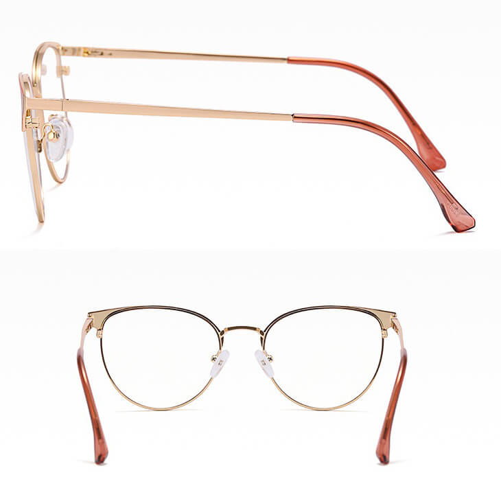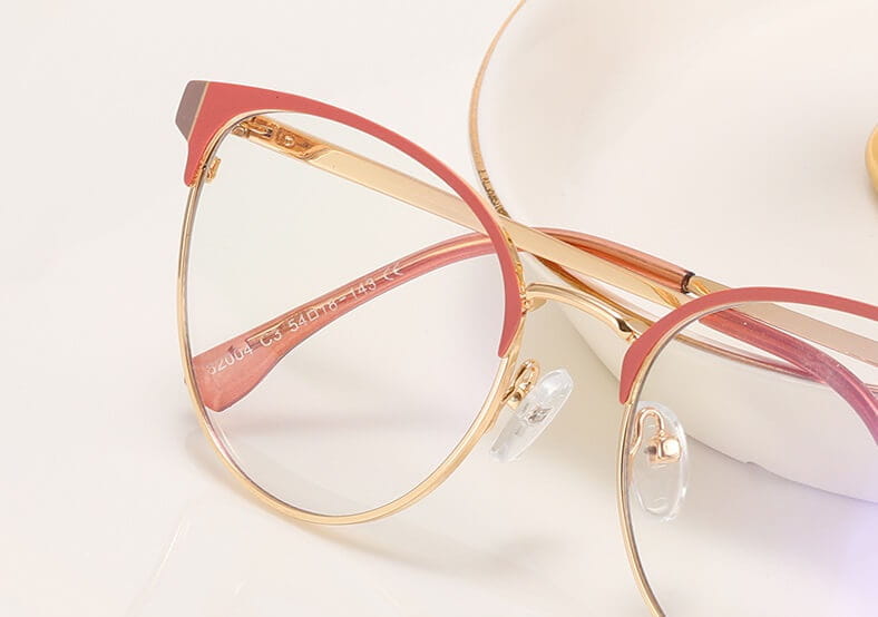Damskie okulary Kocie Oczy zerówki do komputera BLUE LIGHT na teleskopach 25110E Brudny Róż/Złoty