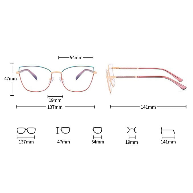 Korekcyjne oprawki damskie - Gotowe okulary zerówki z filtrem Blue Light typu Kocie Oczy