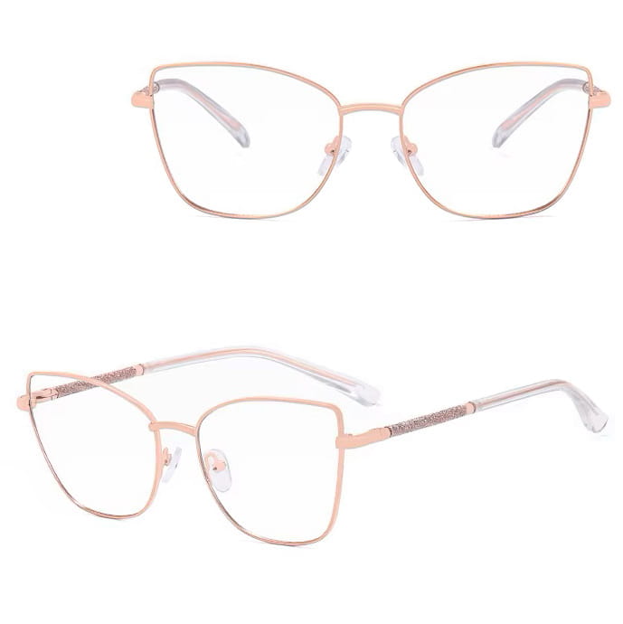 Damskie okulary Kocie Oczy zerówki do komputera BLUE LIGHT na teleskopach 25156A Różowe Złoto