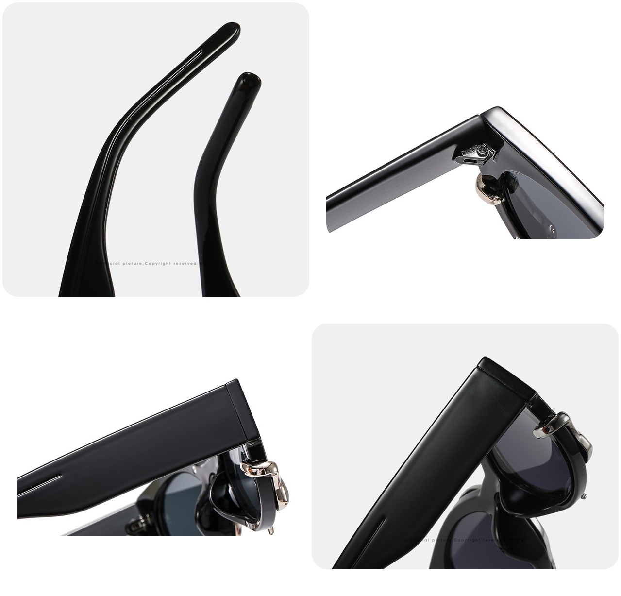 ✅ Wysokiej jakości oprawka na metalowych zawiasach, w kształcie niestandardowym - poliwęglanowa w kolorze czarnym.
