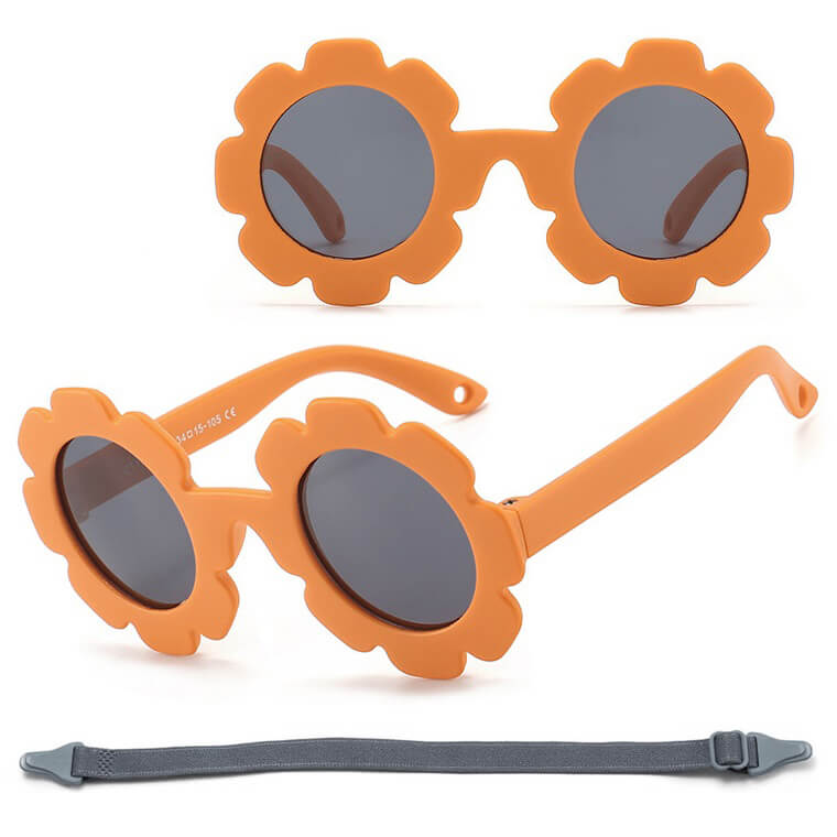 Przeciwsłoneczne okulary w kształcie kwiatka z polaryzacją i paskiem na głowę dla dzieci w kształcie okrągłym wykonane z materiału zapewniającego wysoką elastyczność przy jednoczesnym zachowaniu wysokich parametrów twardości