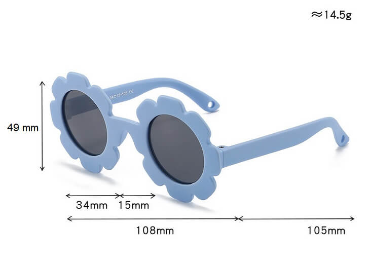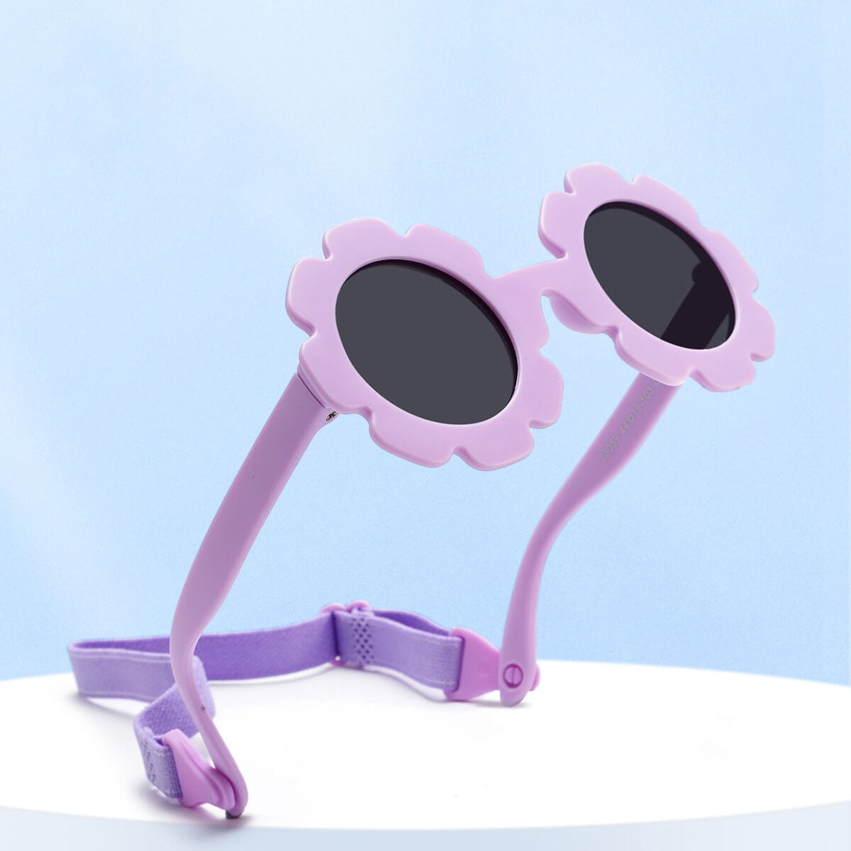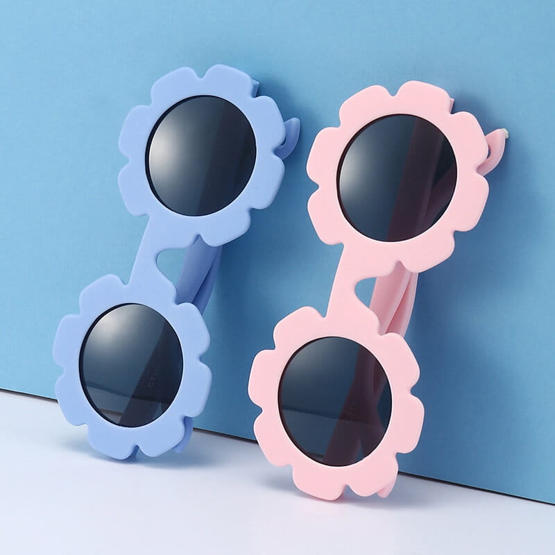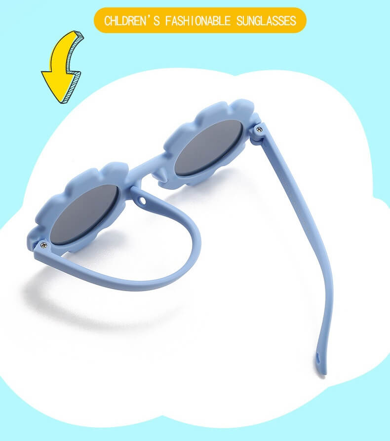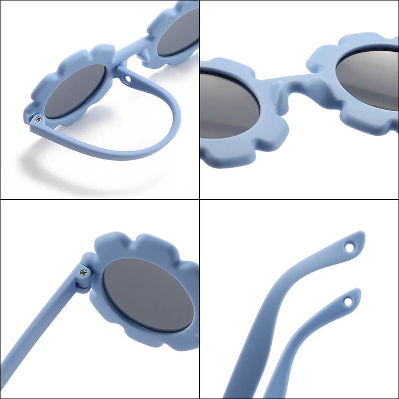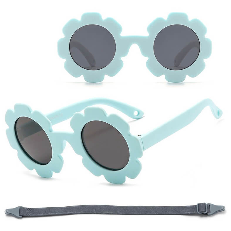 Przeciwsłoneczne okulary w kształcie kwiatka z polaryzacją i paskiem na głowę dla dzieci w kształcie okrągłym wykonane z materiału zapewniającego wysoką elastyczność przy jednoczesnym zachowaniu wysokich parametrów twardości