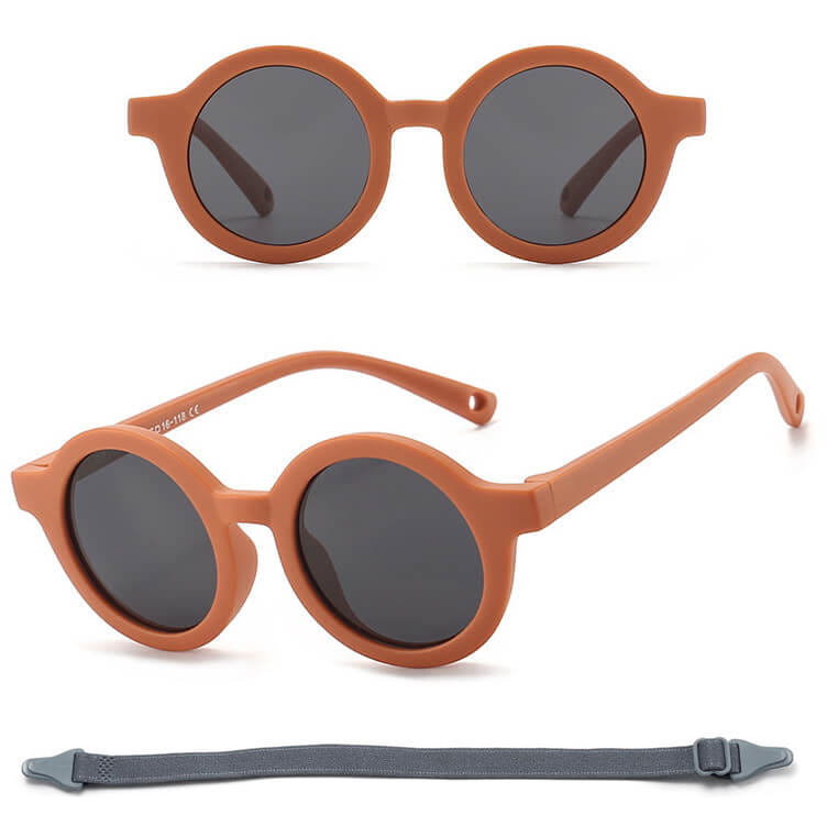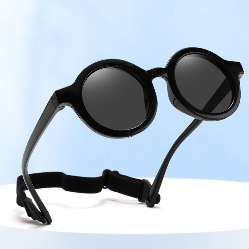 Przeciwsłoneczne okulary z polaryzacją i paskiem na głowę dla dzieci w kształcie okrągłym wykonane z materiału zapewniającego wysoką elastyczność przy jednoczesnym zachowaniu wysokich parametrów twardości