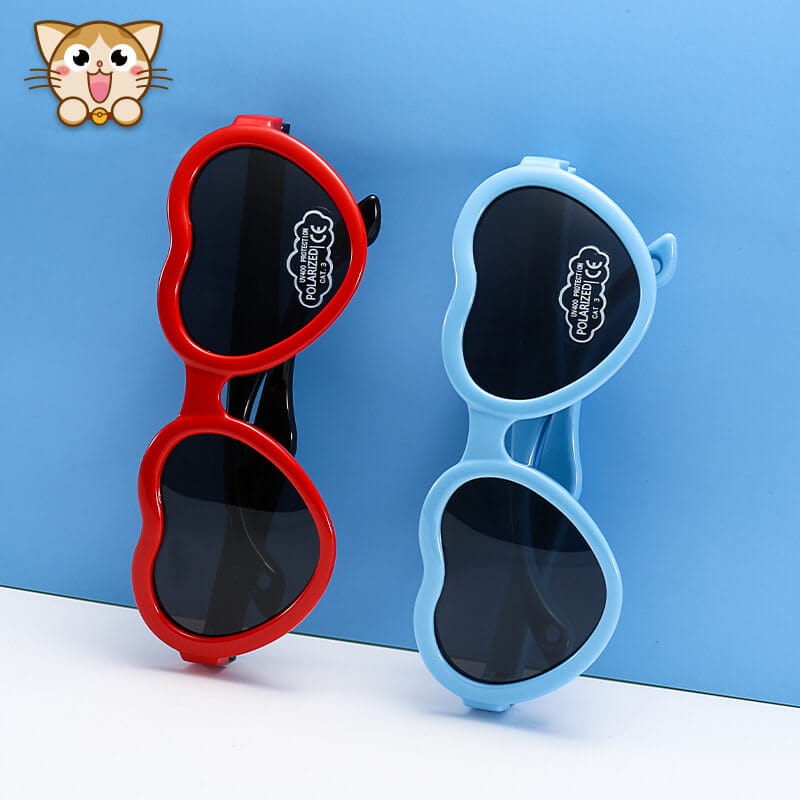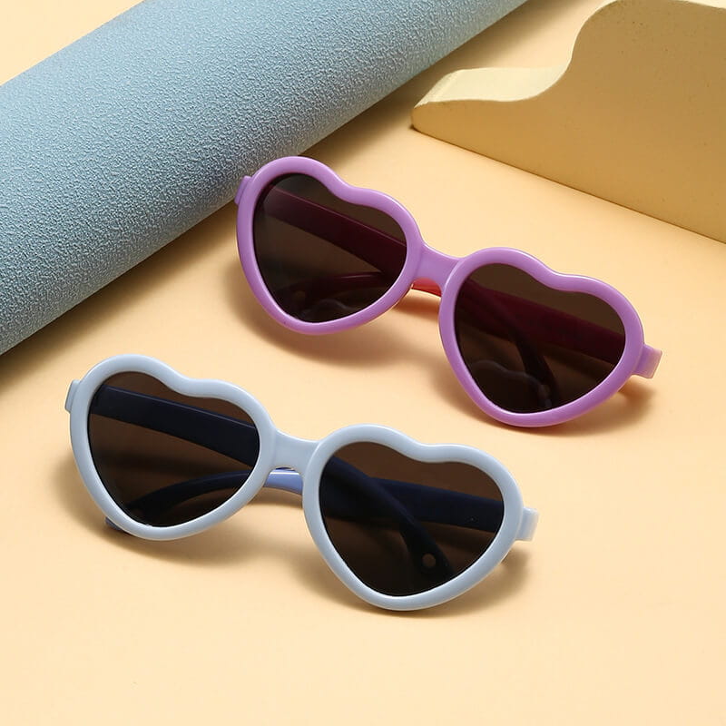 Przeciwsłoneczne okulary z polaryzacją dla dziewczynki w kształcie serca wykonane z materiału zapewniającego wysoką elastyczność przy jednoczesnym zachowaniu wysokich parametrów twardości
