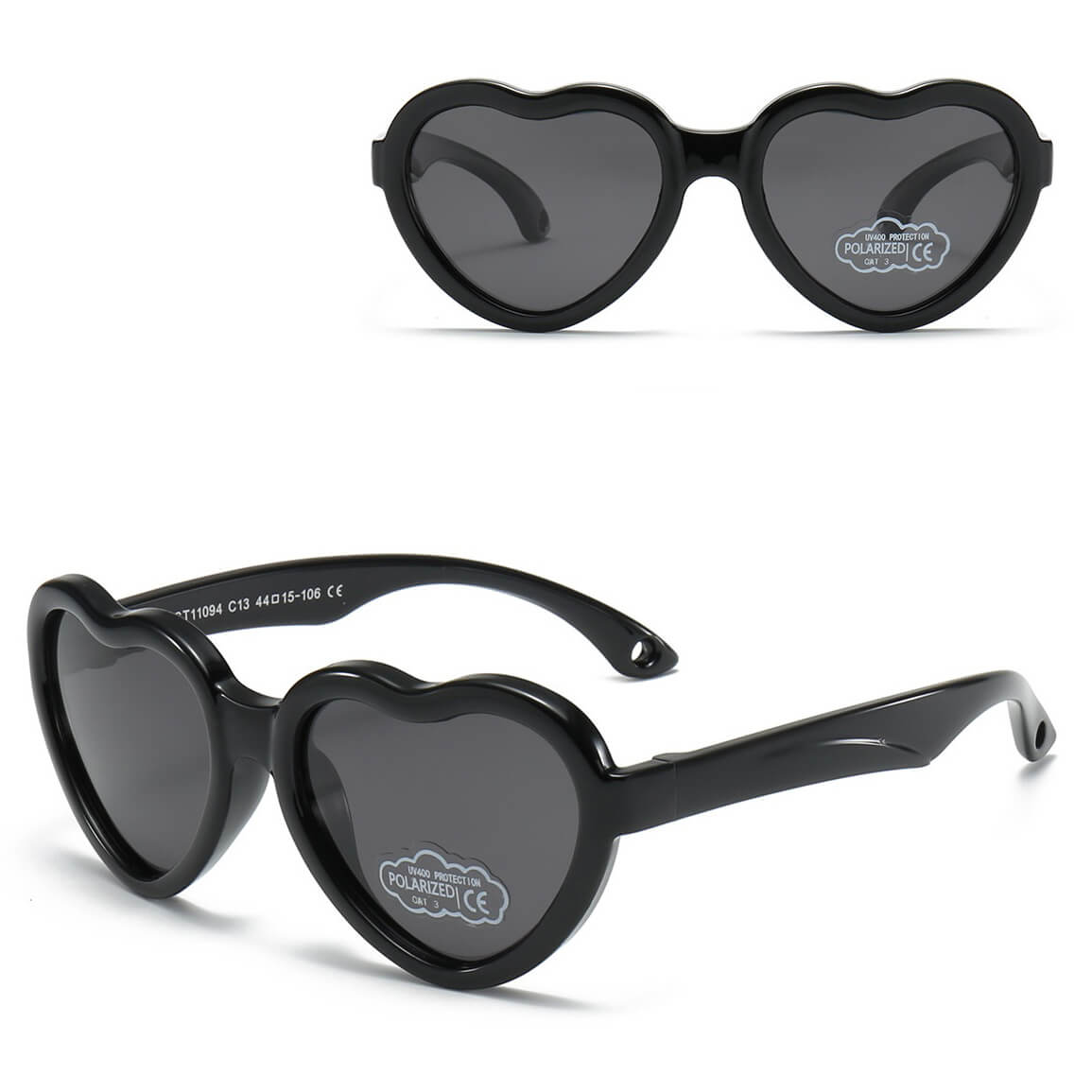 Dziecięce 2-4 lata gumowe okulary przeciwsłoneczne polaryzacyjne serce POL-JR-65 czarne