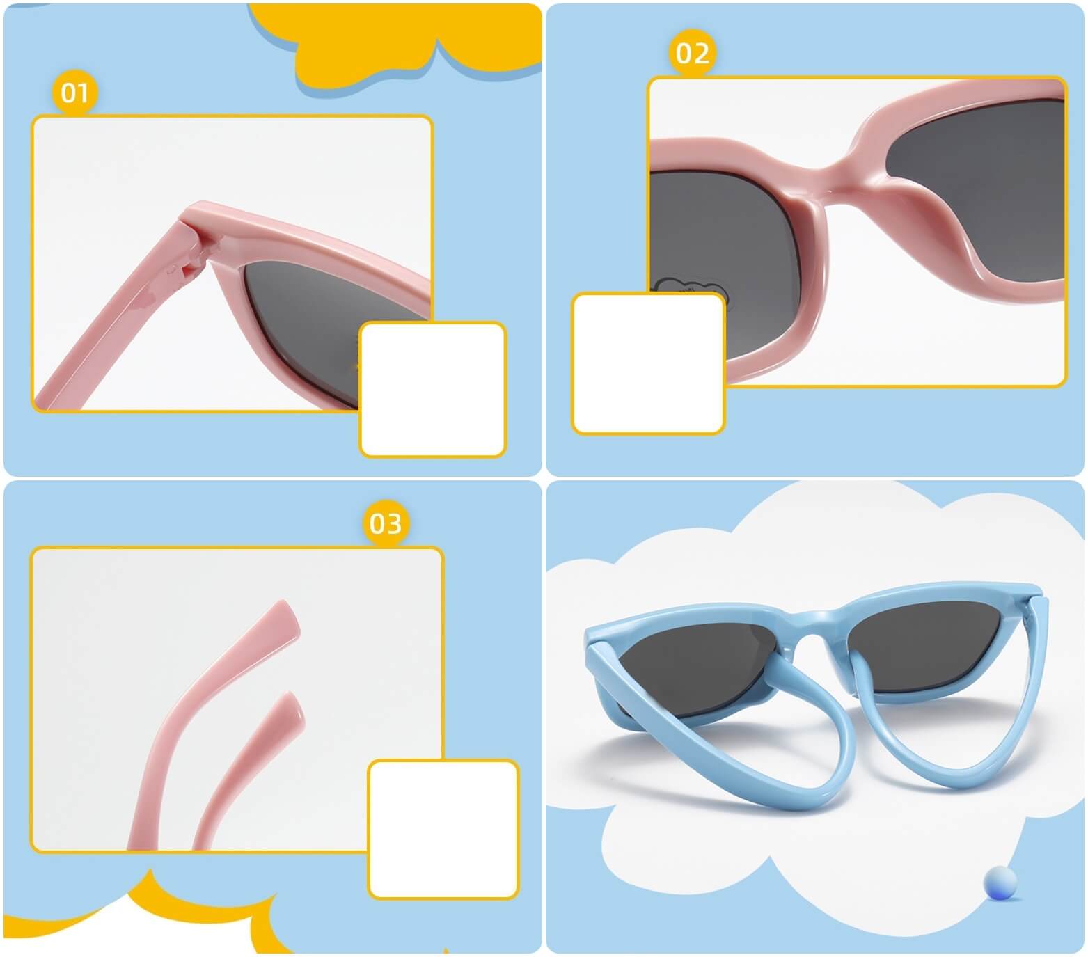 Przeciwsłoneczne okulary z polaryzacją dla dzieci w prostokątnym kształcie wykonane z materiału zapewniającego wysoką elastyczność przy jednoczesnym zachowaniu wysokich parametrów twardości