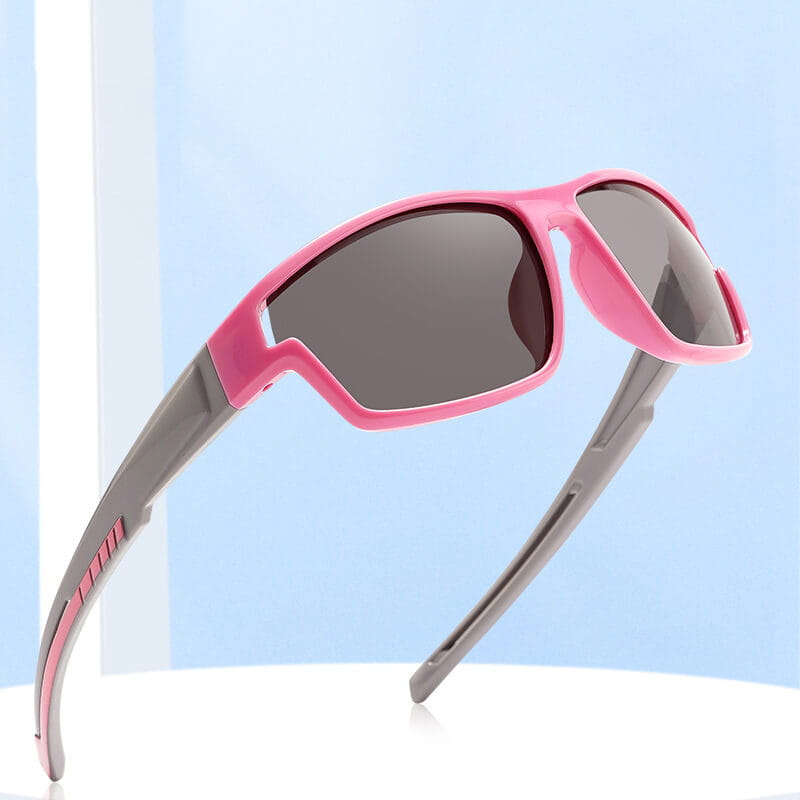 Dziecięce 5-9 lat gumowe okulary przeciwsłoneczne polaryzacyjne POL-JR-62D róż/szary