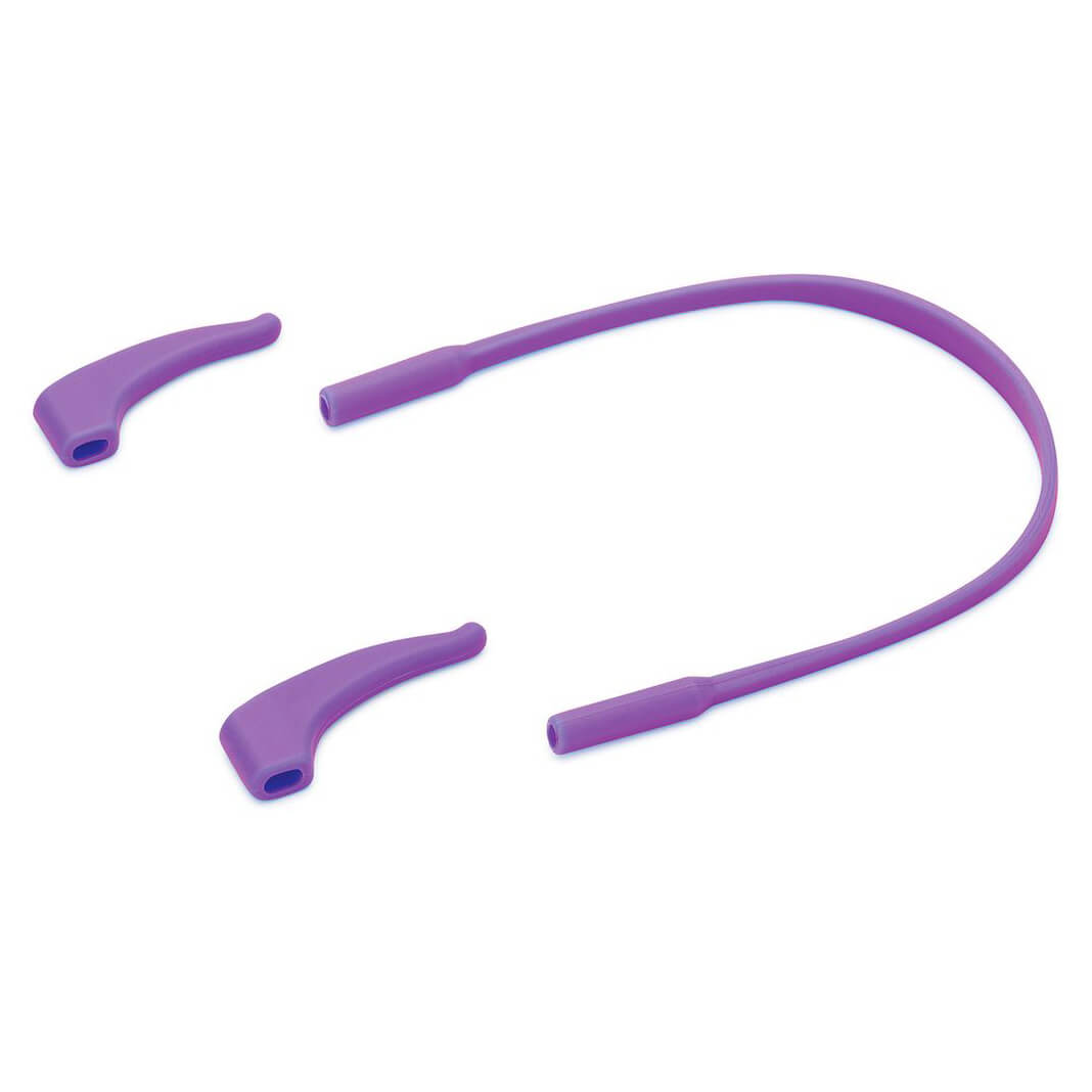 ➤ W zestawie sylikonowa gumka i uchwyty za uszy, dzięki którym okulary nawet podczas fikołków pozostaną na główce dziecka