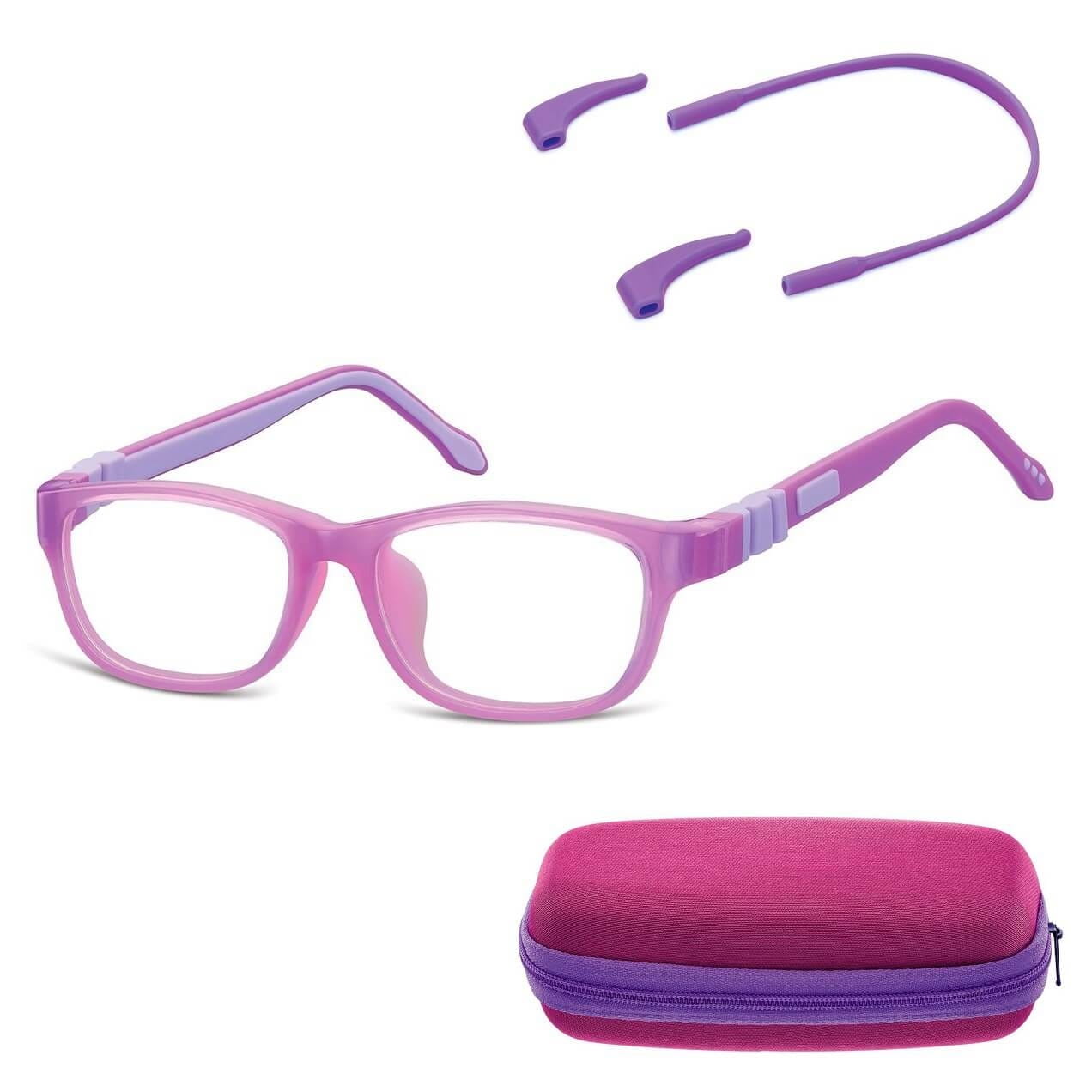 Elastyczne dziecięce oprawki okularowe zerówki prostokątne + gumka Sunoptic K6 fioletowe