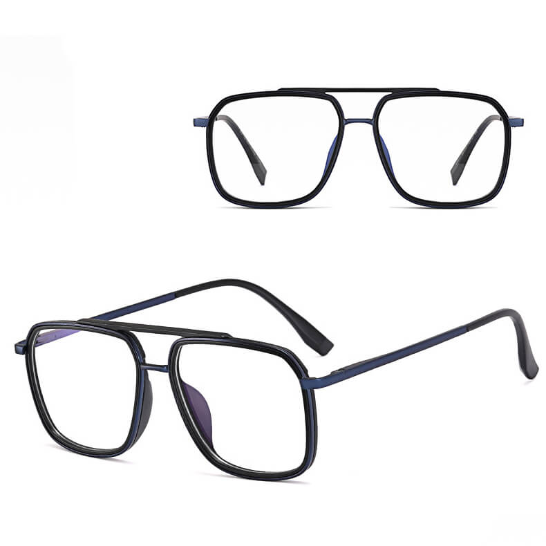 Kompletne gotowe okulary ochronne do komputera - zerówki model 25120E, oprawka pilotka w kolorze granatowo-czarnym