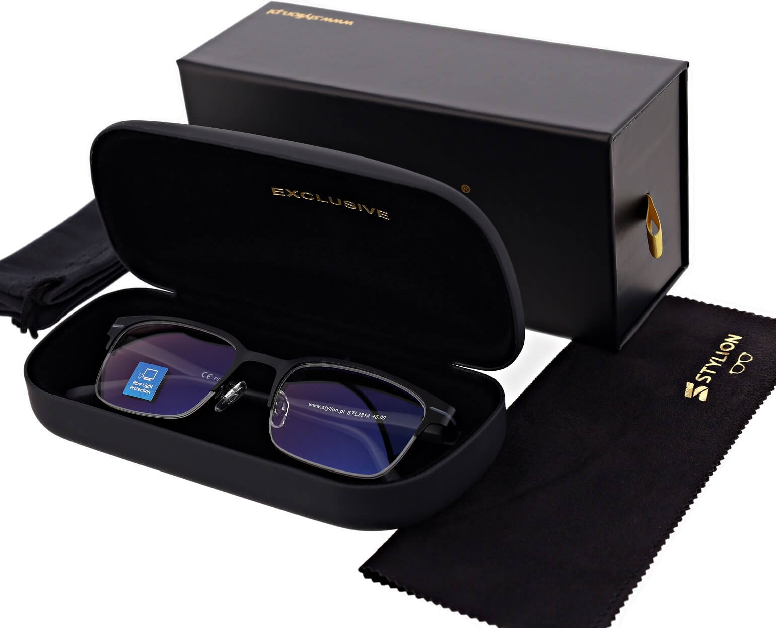 ✔️ markowe okulary STYLION ✔️ oryginalny elegancki box ✔️ logowane etui twarde ✔️ miękki pokrowiec ✔️ ściereczka do soczewek ✔️ metka firmowa |