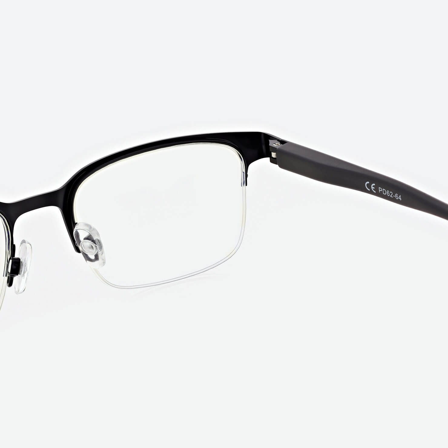 Czarno-grafitowe oprawki żyłkowe do czytania o mocy +1.00 dla mężczyzn, z filtrami Blue Light oraz Antyrefleks idealne do komputera, TV lub smartfona w kształcie prostokątnym z akcesoriami prezentowymi