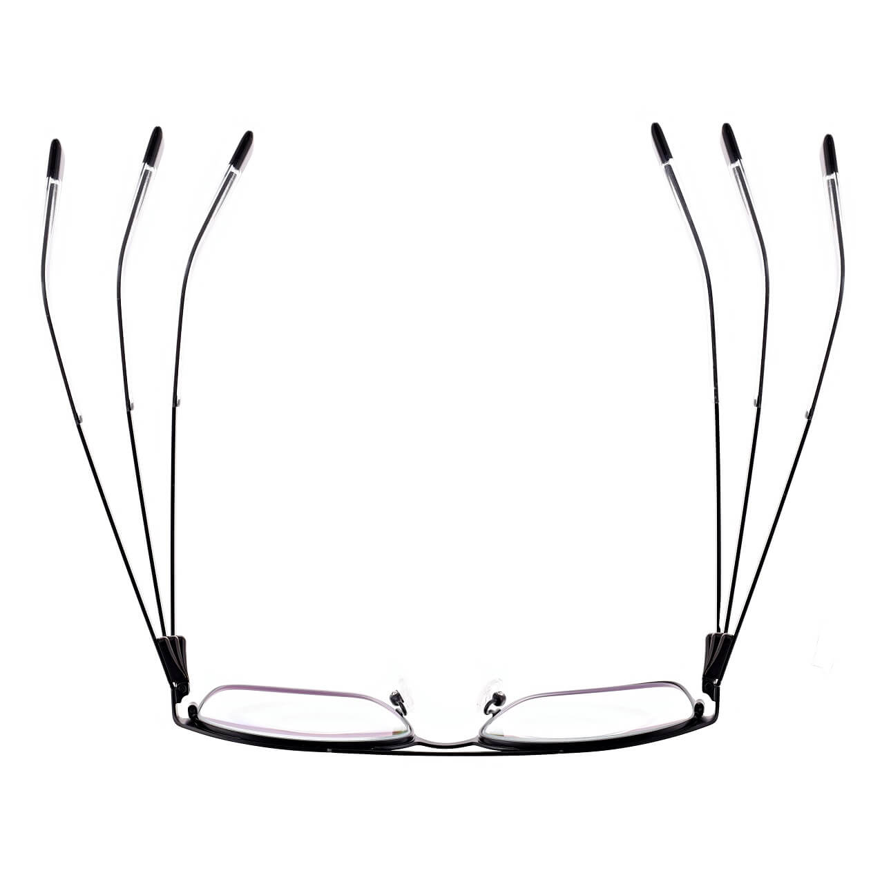 ➤ Lekka wytrzymała oprawka z trwałej stali nierdzewnej w kształcie prostokątnym w kolorze czarnym z teleskopami w zausznikach