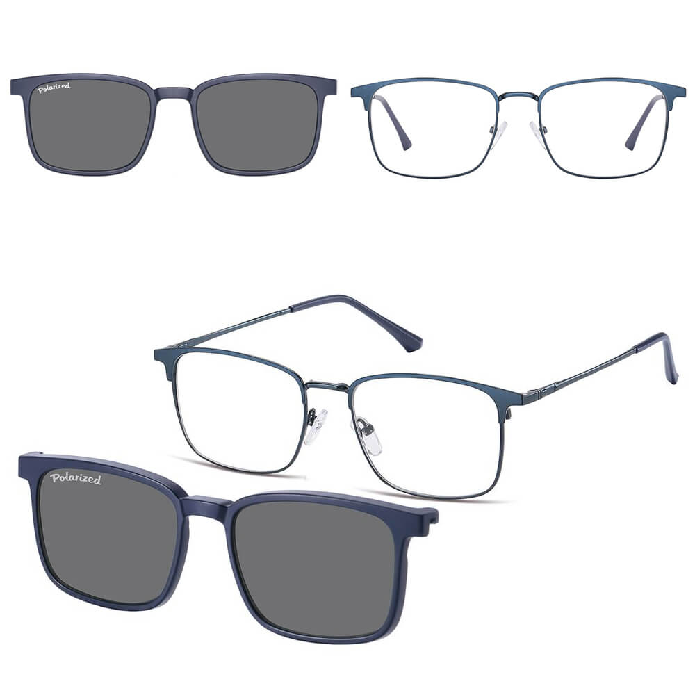 Męskie okulary pod korekcję z polaryzacyjną nakładką przeciwsłoneczną CLIP-MC97A-1 granatowe