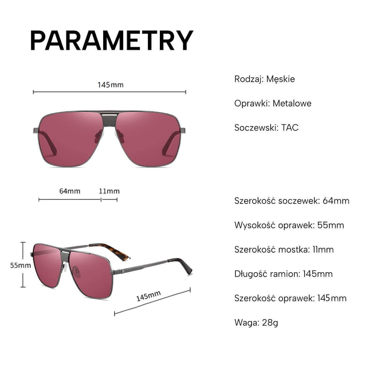 | Właściwości soczewek | przeciwsłoneczne z polaryzacją |