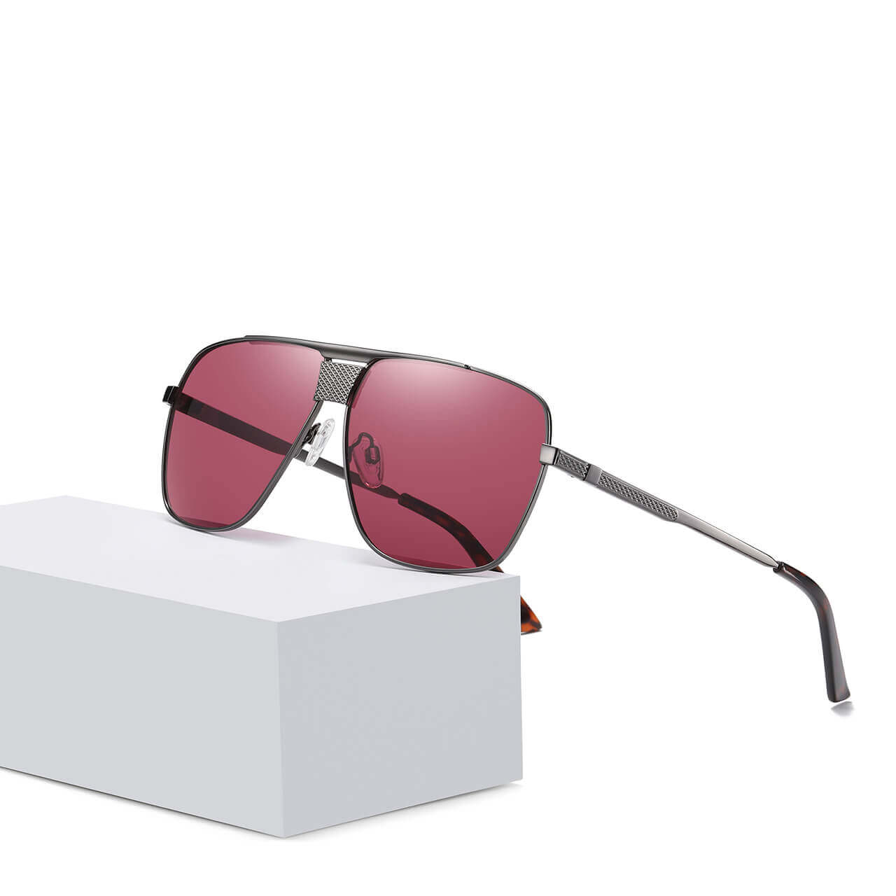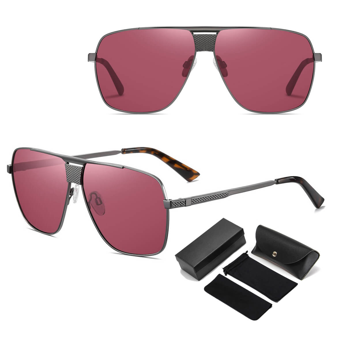 Okulary przeciwsłoneczne polaryzacyjne w kształcie pilotków w kolorze grafitowym z ciemno czerwonymi soczewkami - model STL57 marki STYLION z oryginalnym zestawem akcesoriów