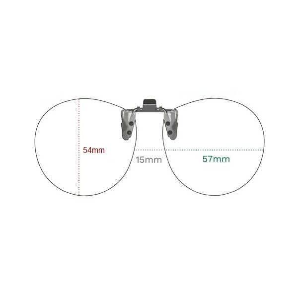 szerokość jednej soczewki (cm): 5.7 max wysokość soczewki (cm): 5.4 całkowita szerokość nakładki (cm): 12.8 przestrzeń między soczewkami (cm): 1.5 |