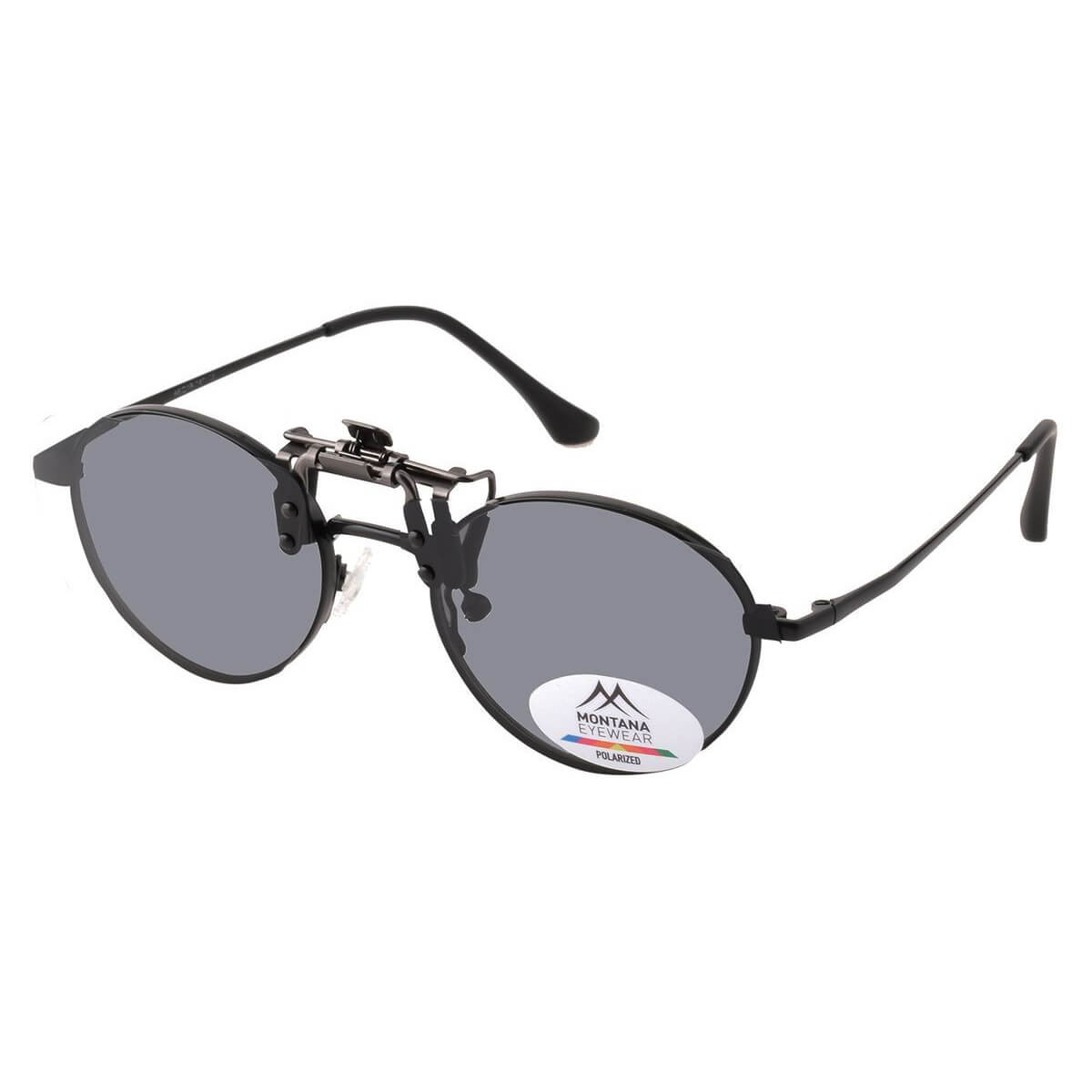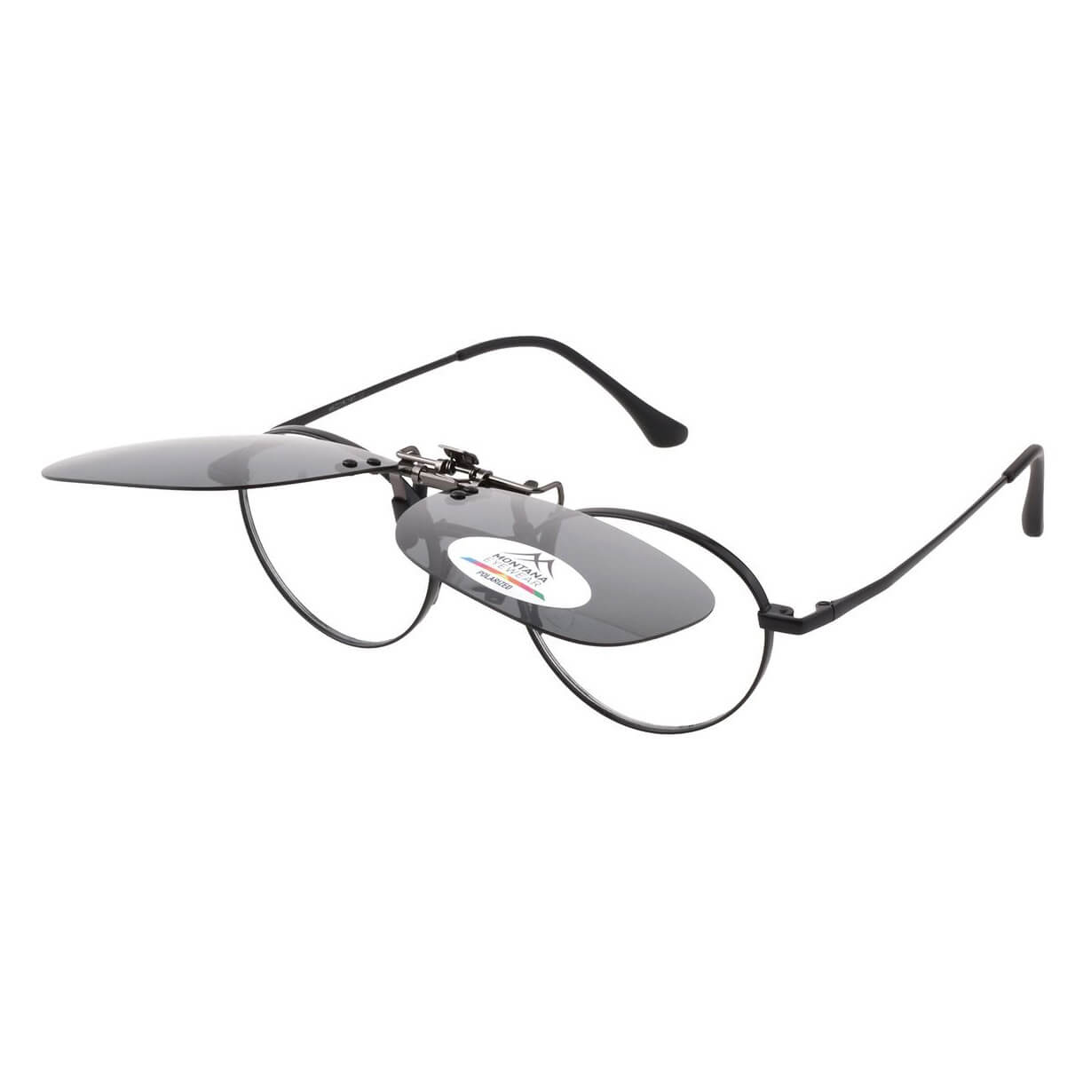 Czarne uchylne nakładki przeciwsłoneczne nakładane na okulary korekcyjne marki Montana