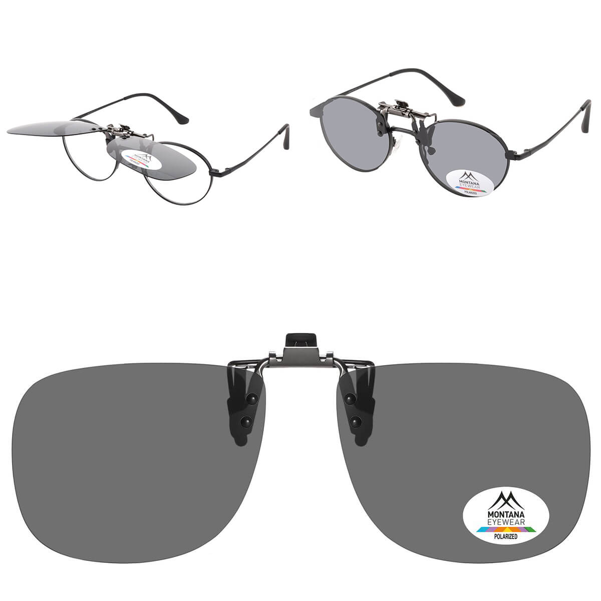 Uniwersalne nakładki przeciwsłoneczne z polaryzacją montowane na klips w kolorze czarnym - do montażu na okulary korekcyjne