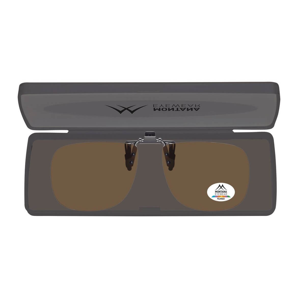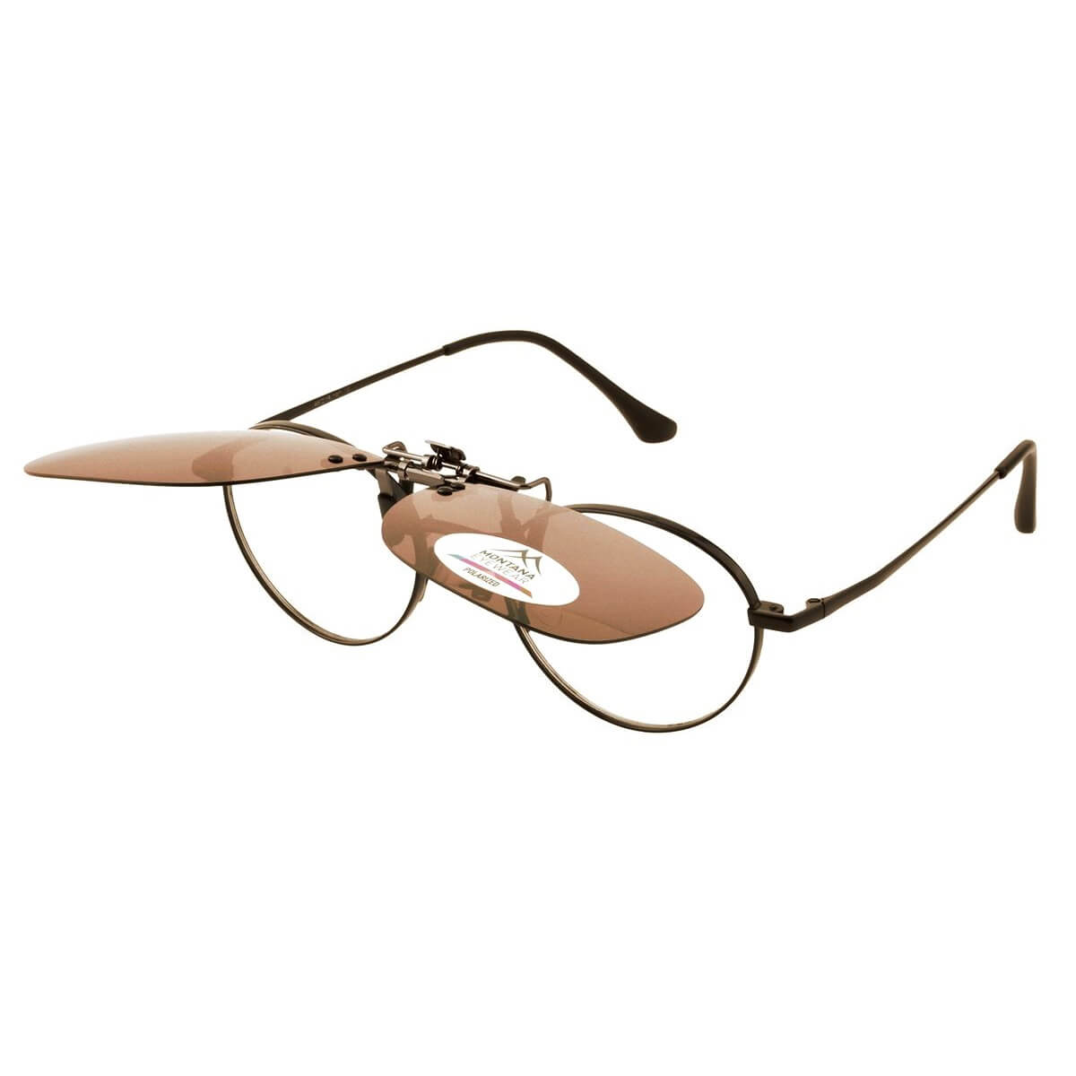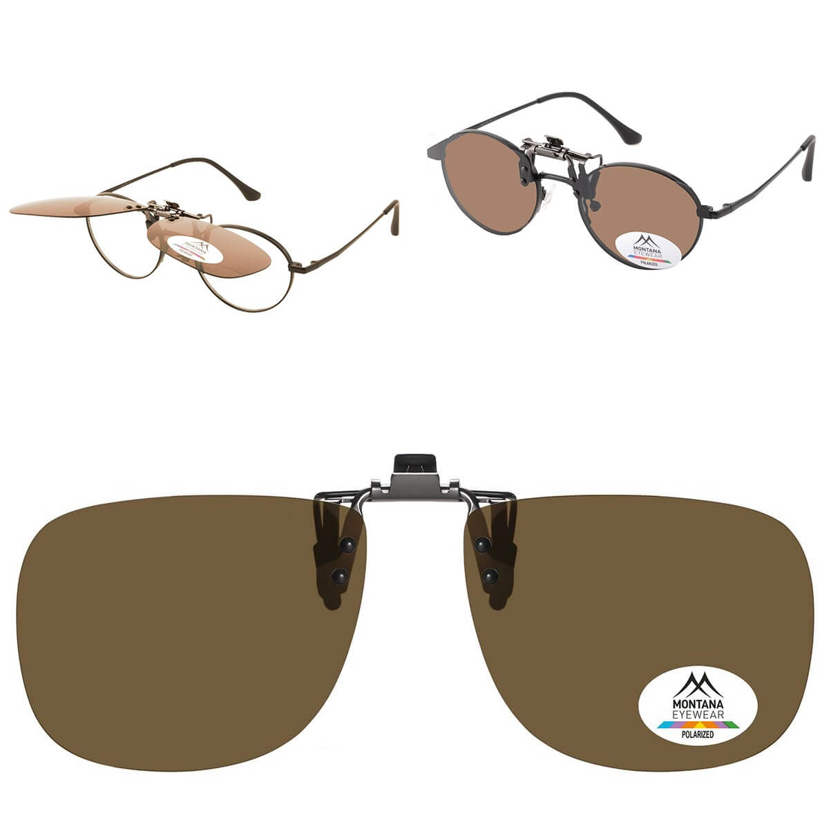 Uniwersalne nakładki przeciwsłoneczne z polaryzacją montowane na klips w kolorze brązowym - do montażu na okulary korekcyjne