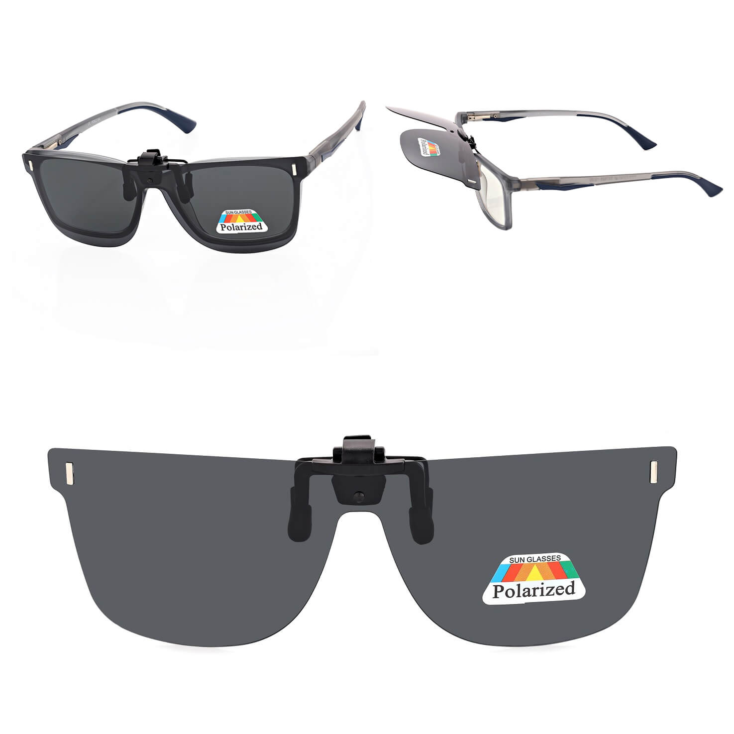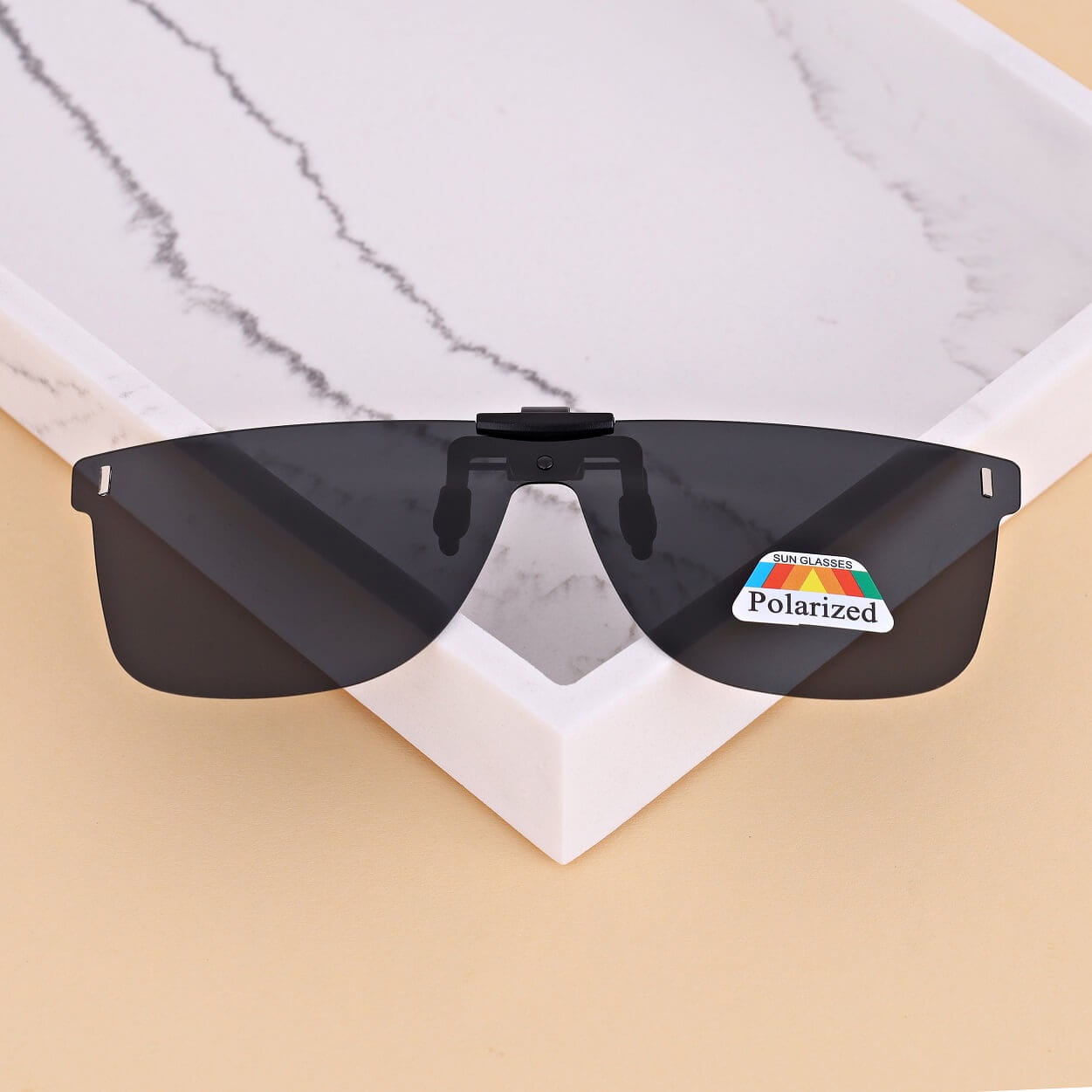 Uniwersalne nakładki przeciwsłoneczne z polaryzacją montowane na klips w kolorze czarnym do montażu na okulary korekcyjne.