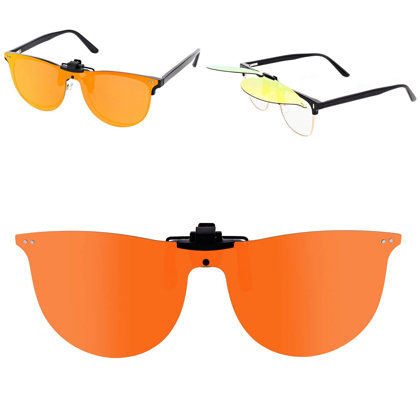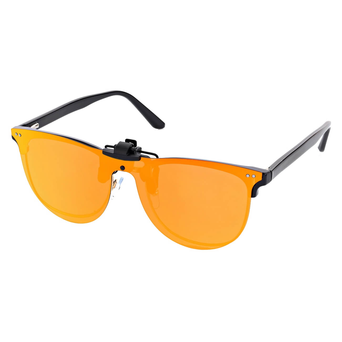 Uniwersalne nakładki przeciwsłoneczne z polaryzacją montowane na klips w kolorze pomarańczowym lustrzanym do montażu na okulary korekcyjne