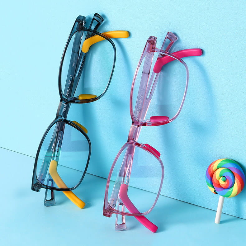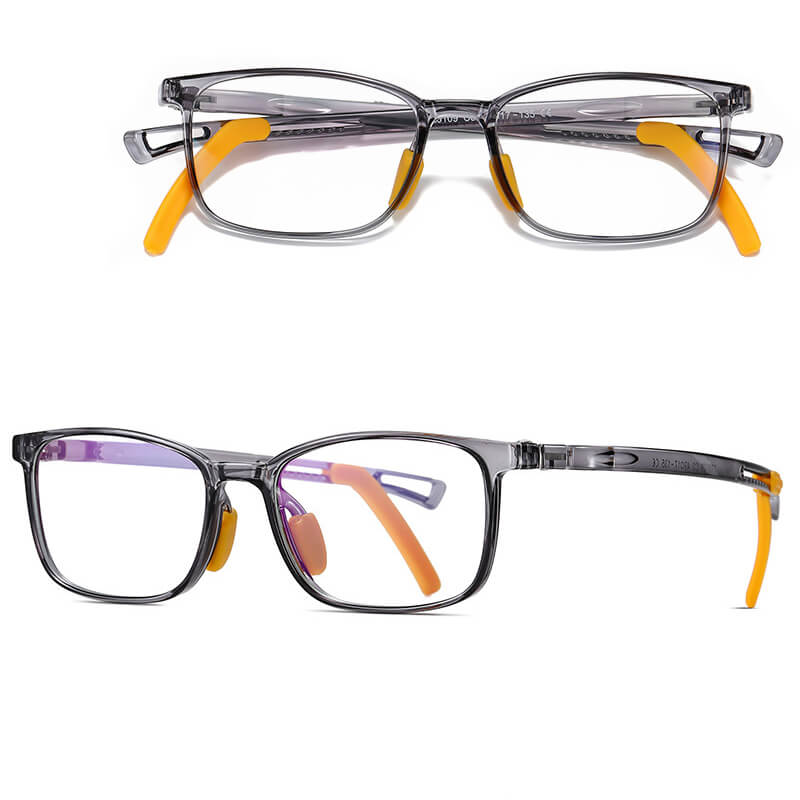 Elastyczne dziecięce okulary z regulowanymi uchwytami za uszy w kształcie prostokątnym przeznaczone do komputera, TV, smartfona z filtrem Blue Light ochronne w wersji zerowej bez wady wzroku lub jako oprawki korekcyjne