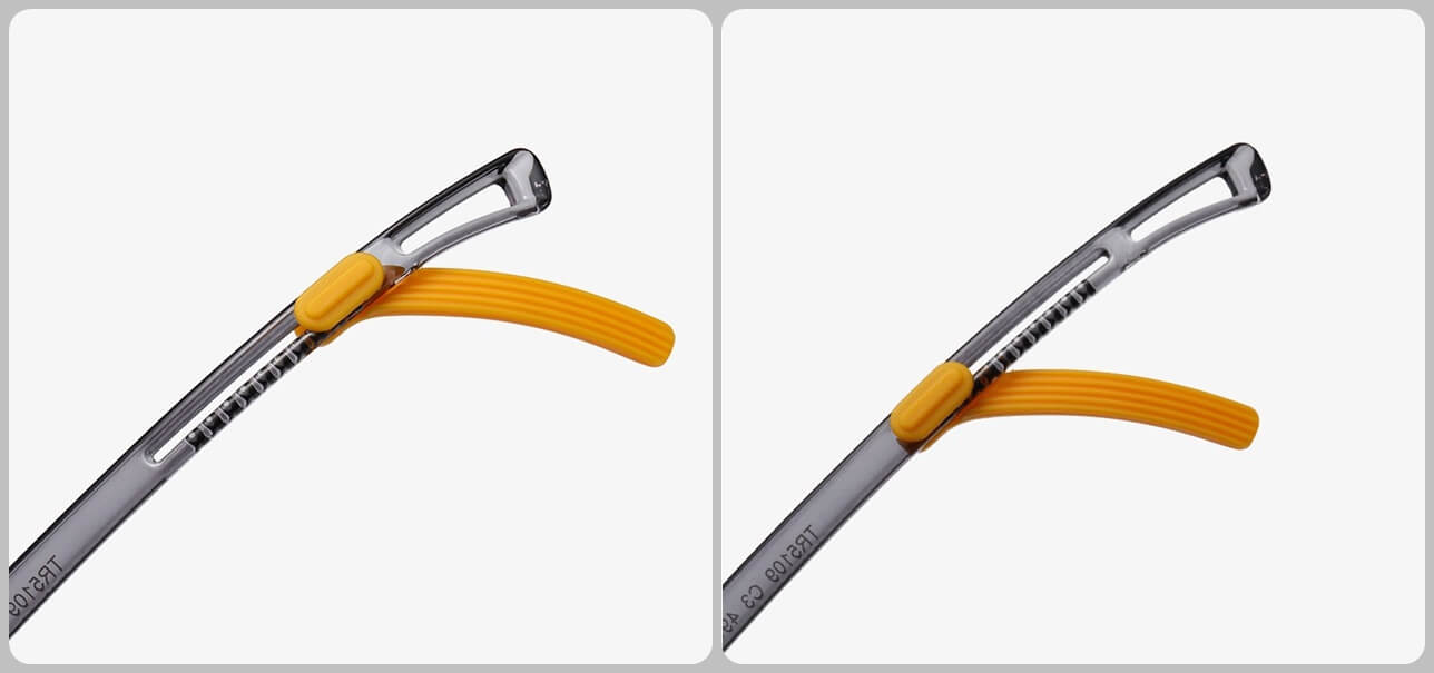 ➤ Oprawki posiadają regulowane uchwyty za uszy dzięki którym okulary trzymają się głowy nawet podczas fikołków
