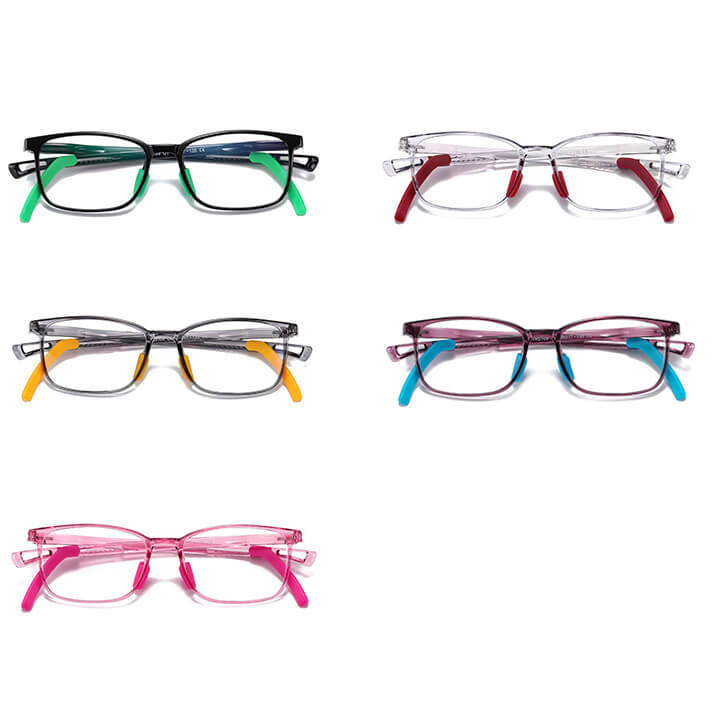 Elastyczne dziecięce okulary z regulowanymi uchwytami za uszy w kształcie prostokątnym przeznaczone do komputera, TV, smartfona z filtrem Blue Light ochronne w wersji zerowej bez wady wzroku lub jako oprawki korekcyjne