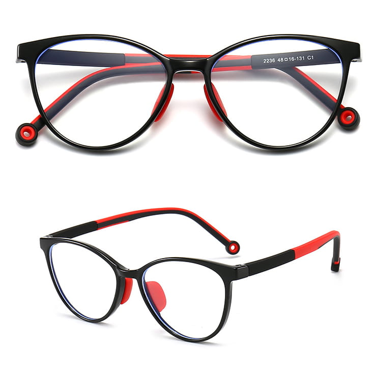 Elastyczne dziecięce okulary w kształcie kocich oczu przeznaczone do komputera, TV, smartfona z filtrem Blue Light ochronne w wersji zerowej bez wady wzroku lub jako oprawki korekcyjne