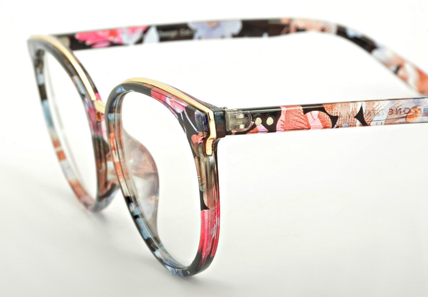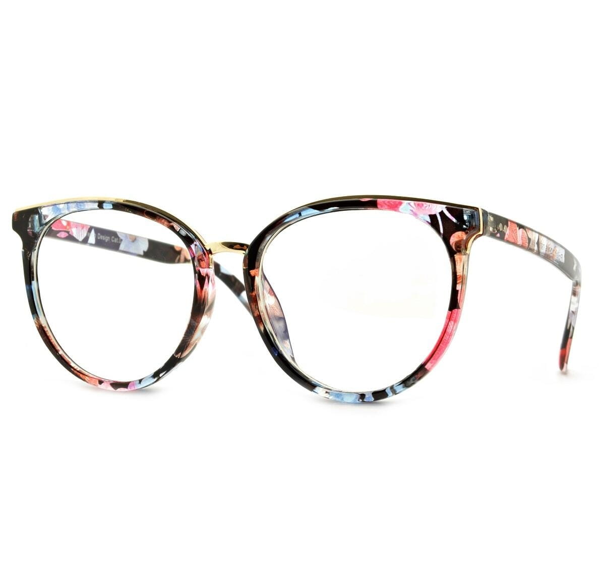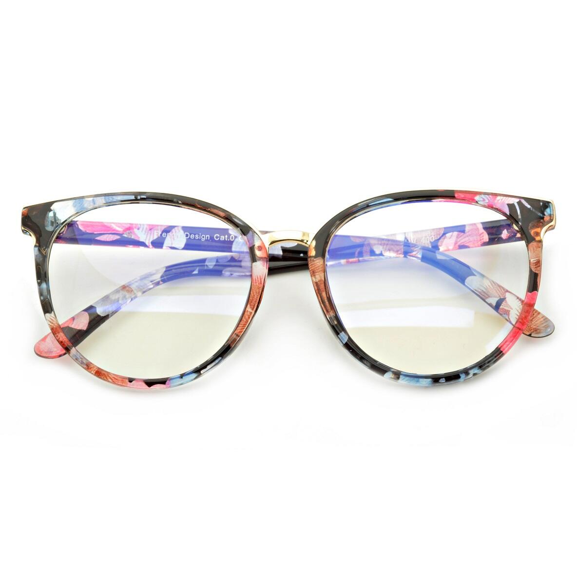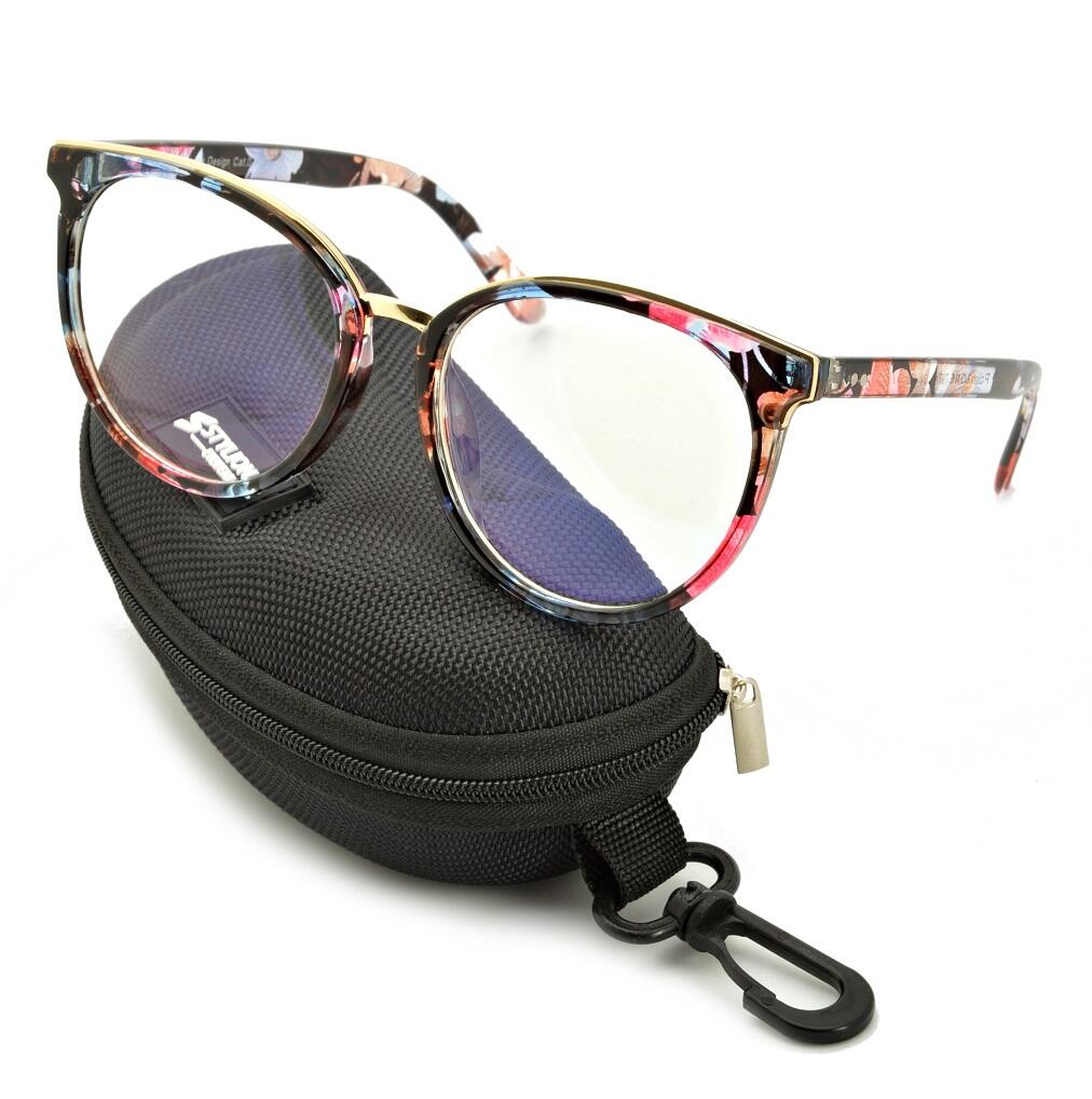 Okulary Kocie Oczy Zerówki z Antyrefleksem kwieciste POL-BLF-727AK