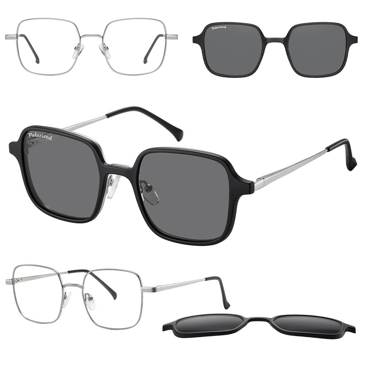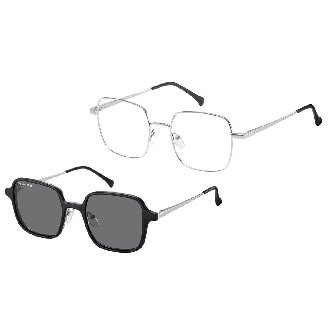 Okulary kwadratowe pod korekcję z polaryzacyjną nakładką przeciwsłoneczną CLIP-MC98A-1 srebrne
