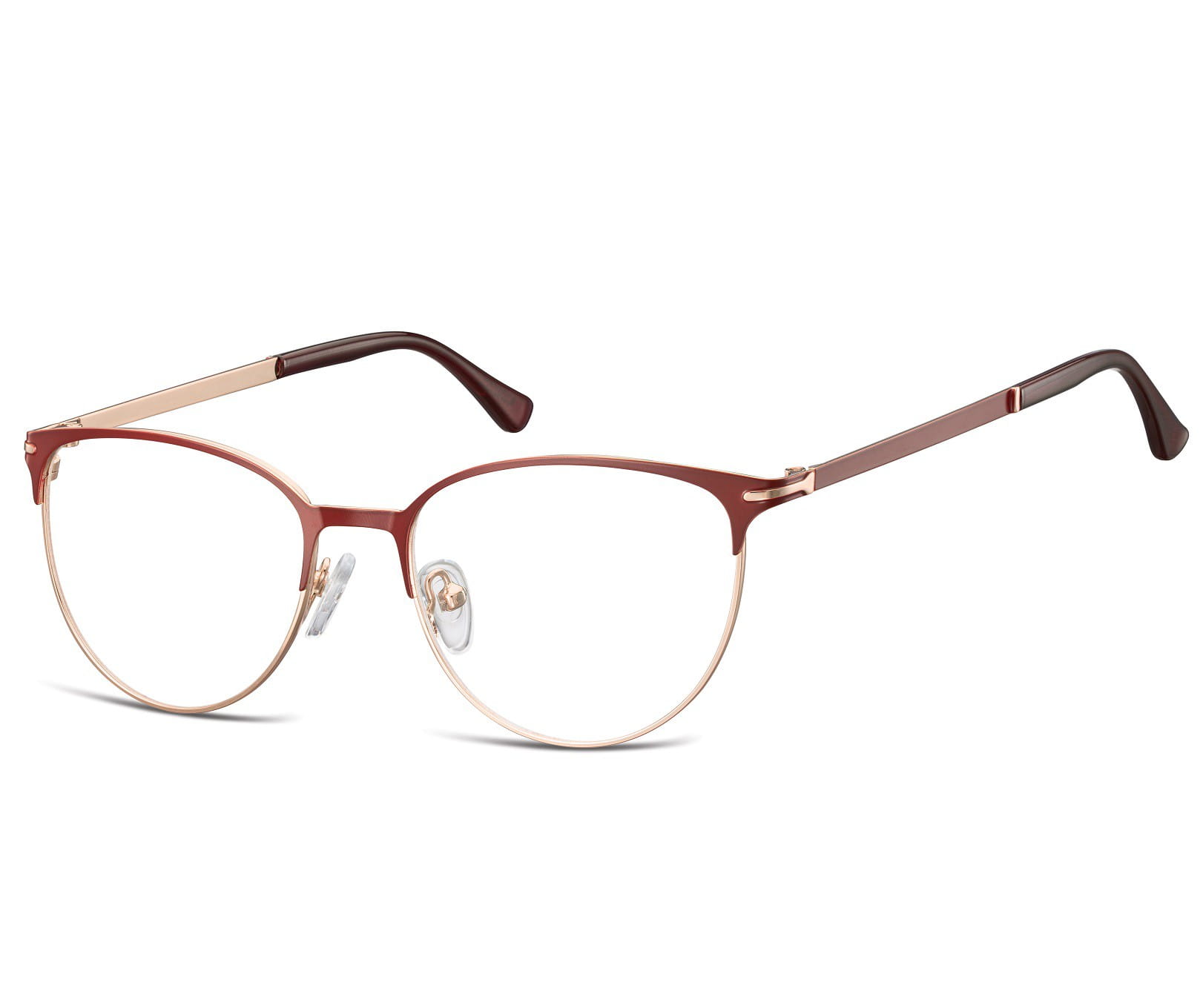 Okulary oprawki korekcyjne kocie oczy zerówki sunoptic 914f złoto-czerwone — cechy charakterystyczne
