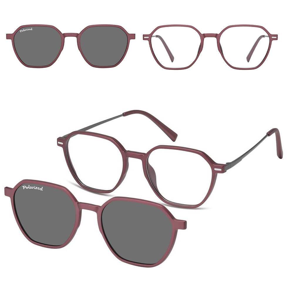 Okulary pod korekcję z polaryzacyjną nakładką przeciwsłoneczną CLIP-M-TRC300C-1 bordowy
