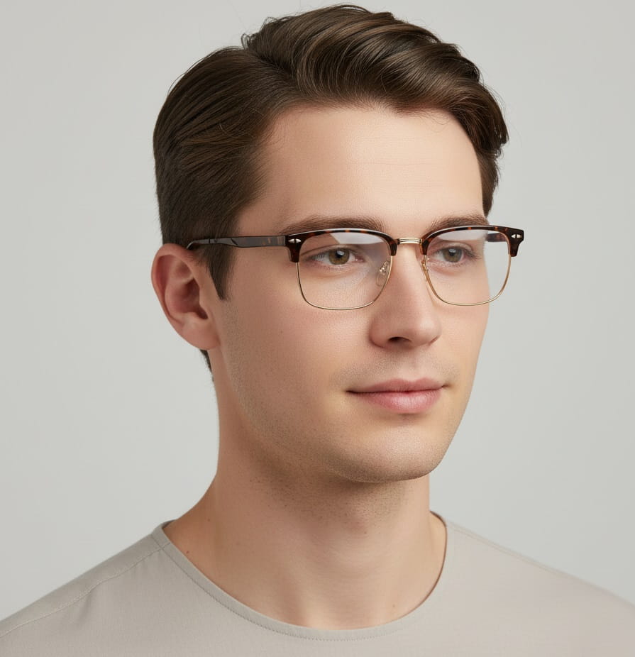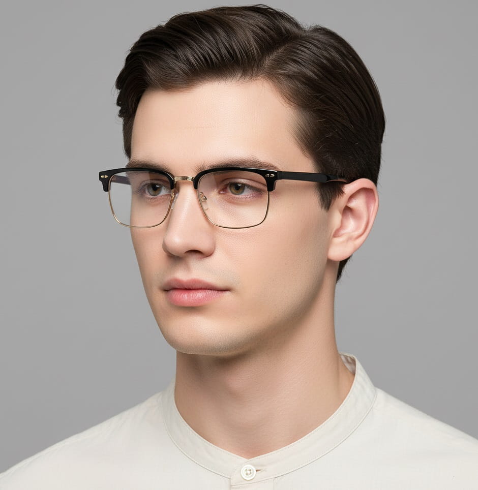 Ten styl oprawki zwany także Browline Glasses lub Half-Rim Glasses (okulary półramkowe), jest to klasyczny styl oprawek, charakteryzujący się grubszą górną częścią wykonaną z plastiku (lub acetatu) i cienką metalową dolną ramką. Ten design stał się popularny w latach 50. i 60., a dziś jest ikoną stylu retro i vintage.