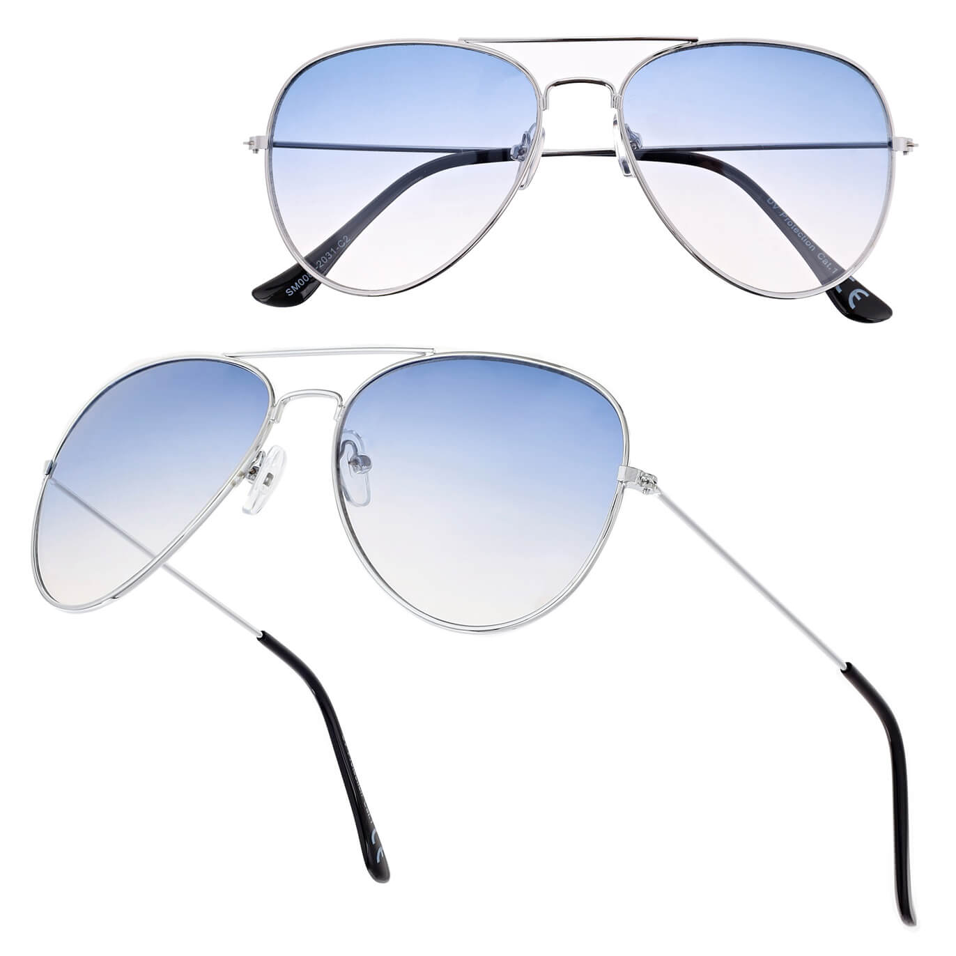 Okulary przeciwsłoneczne pilotki cieniowane w kat.1 - 2163NS srebrny/niebieski