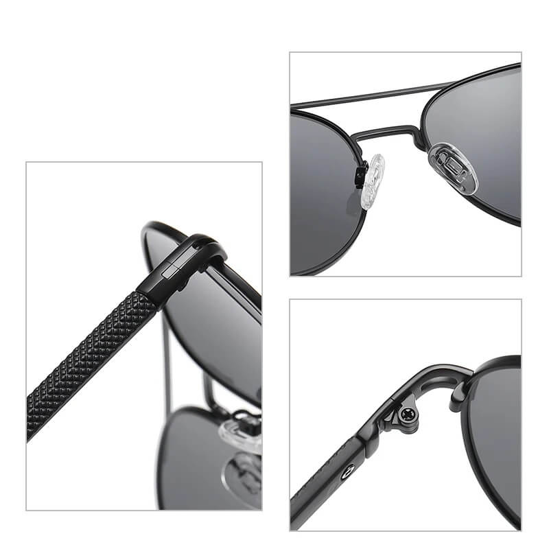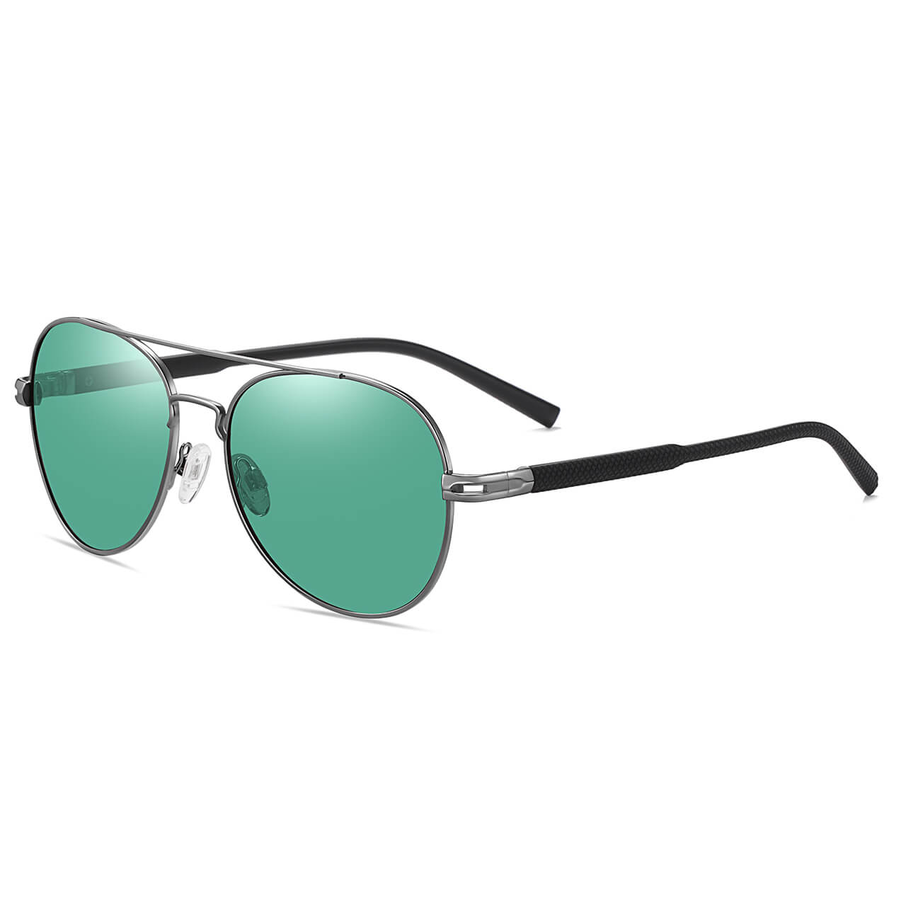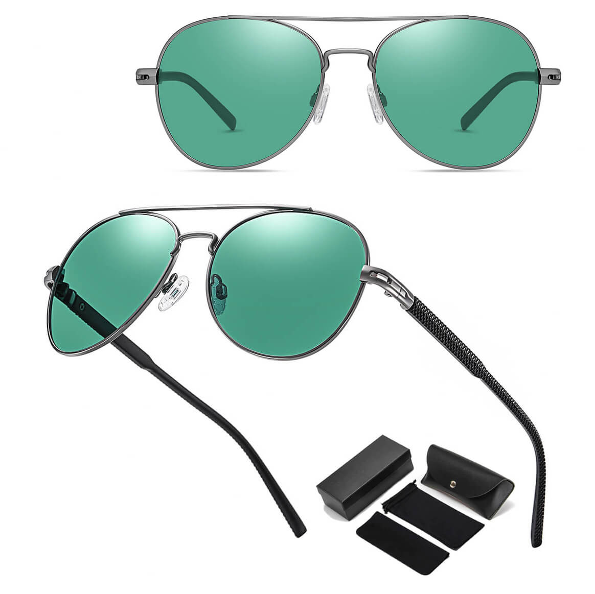 Okulary przeciwsłoneczne polaryzacyjne w kształcie pilotków w kolorze grafitowo-czarnym z zieloną soczewką - model STL52 marki STYLION z oryginalnym zestawem akcesoriów