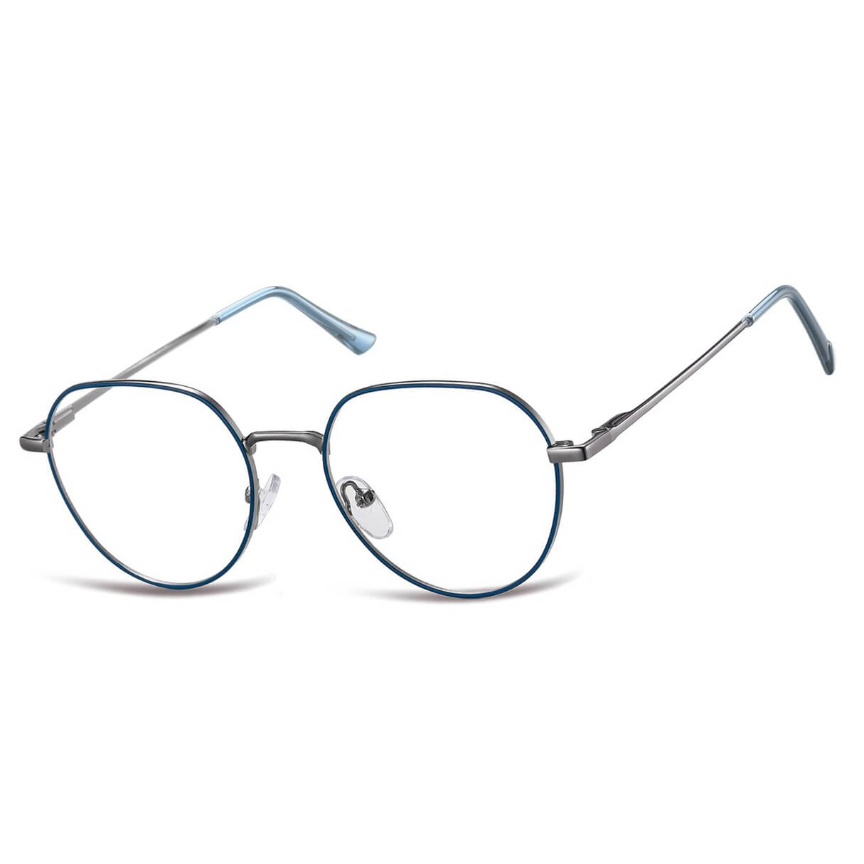 Okulary optyczne lenonki przeznaczone pod korekcję lub jako zerówki do uzupełniania codziennej stylizacji ze stali nierdzewnej Sunoptic M294E granatowo - srebrne w rozmiarze medium