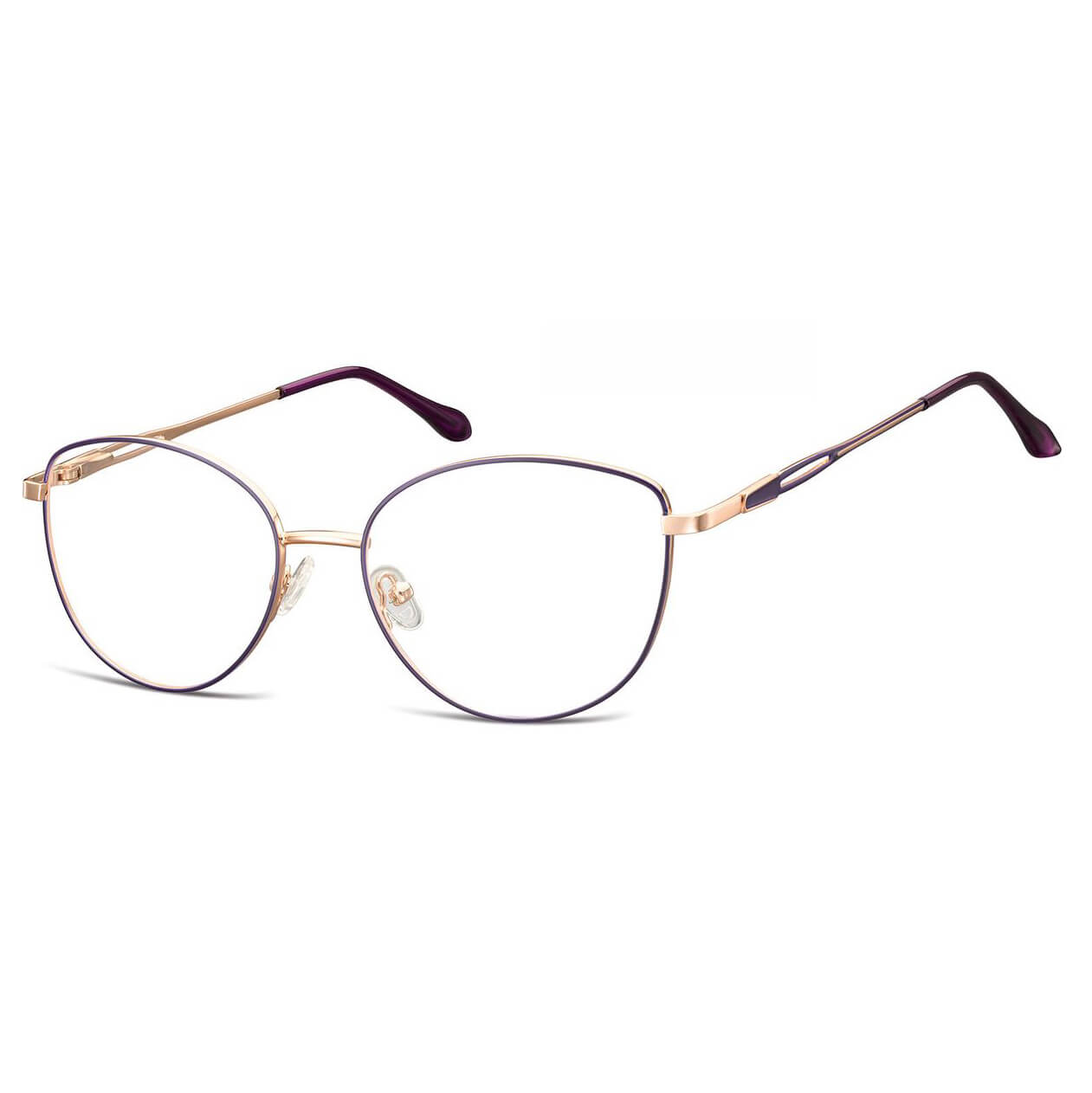 Oprawki stalowe korekcyjne zerówki Kocie Oczy marki Sunoptic M296D w kolorze fioletowo-złotym
