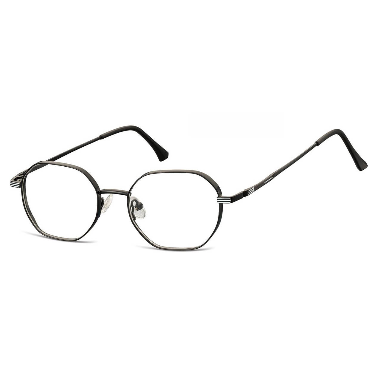 Okulary optyczne sześcioboczne przeznaczone pod korekcję lub jako zerówki do uzupełniania codziennej stylizacji ze stali nierdzewnej Sunoptic M297D czarne w rozmiarze medium