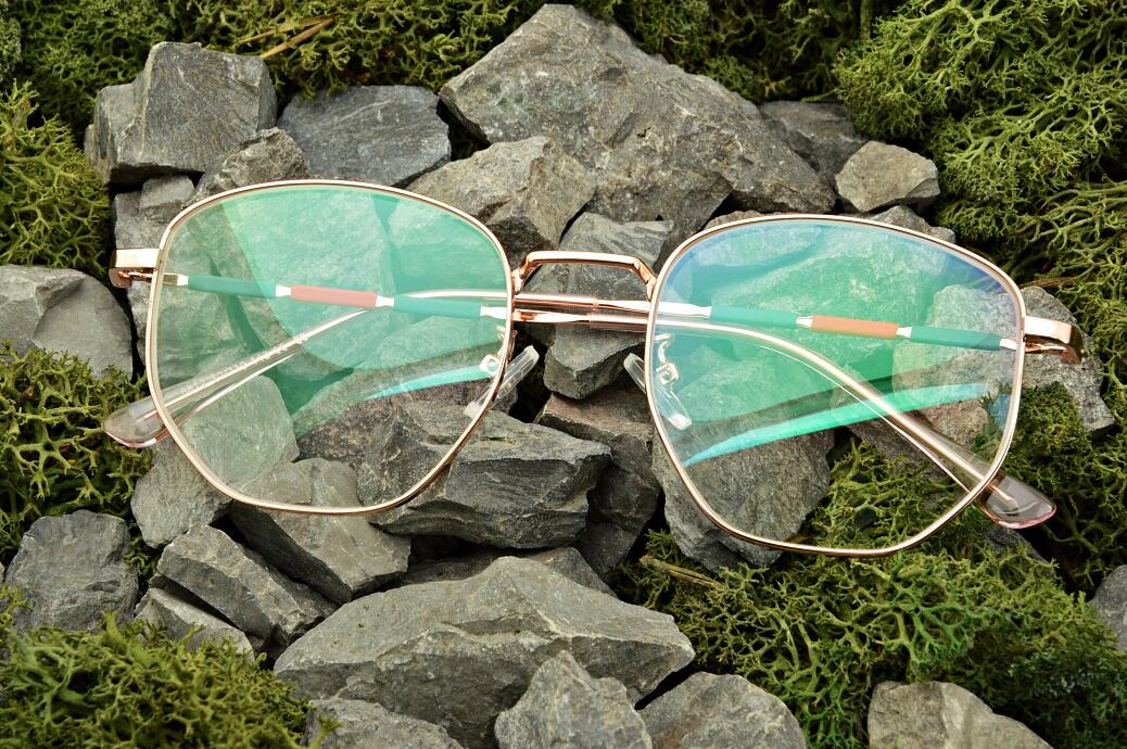 ➤ Oprawki owalne w stylu lenonek w kolorze różowego złota z zielono-czerwonymi wstawkami