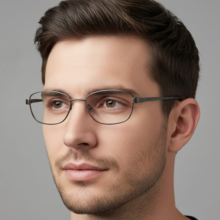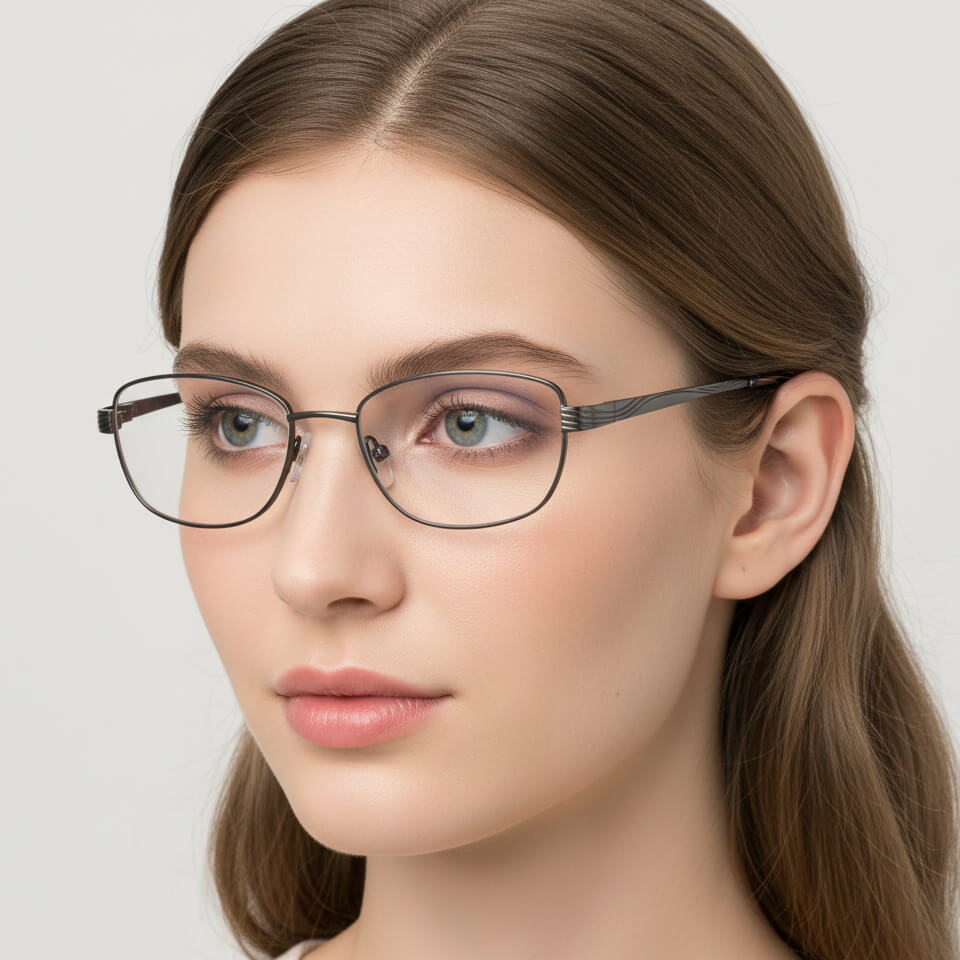 Owalny model okularów optycznych przeznaczony pod korekcję lub jako zerówki do uzupełniania codziennej stylizacji ze stali nierdzewnej